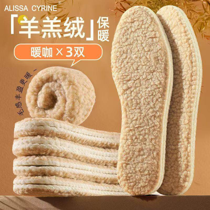 羊羔绒保暖鞋垫男女吸汗防臭加绒加厚防寒毛绒软底舒适羊毛棉冬季
