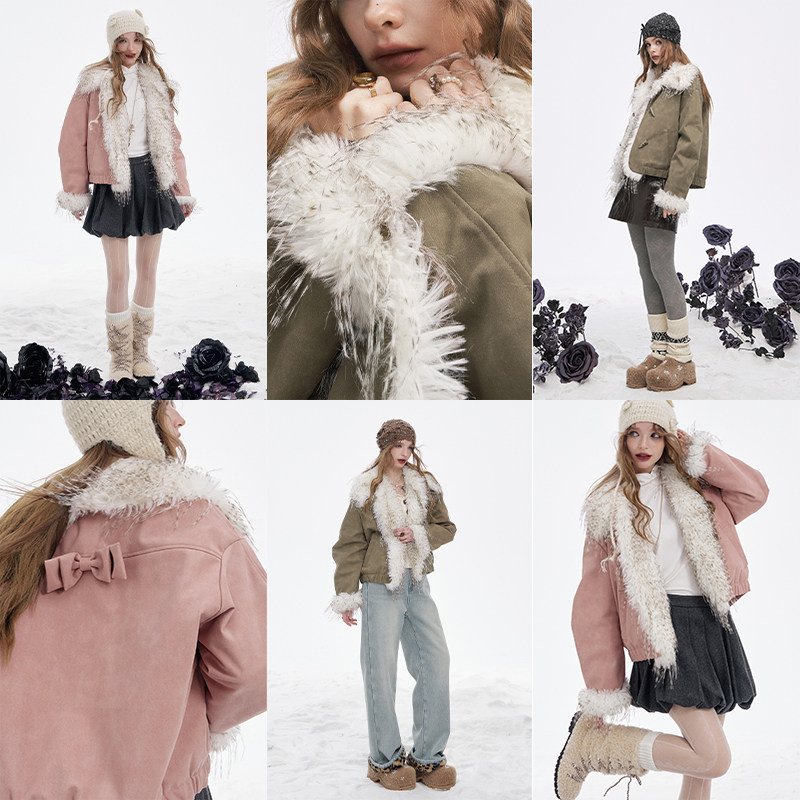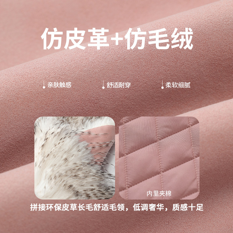 妖精的口袋毛绒大毛领拼接棉服女2025年冬季新款保暖夹棉皮衣外套