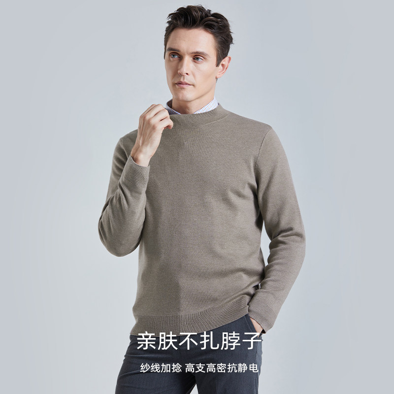 【可机洗】SHANSHAN杉杉羊毛针织衫男士秋冬季休闲纯色圆领毛衣男