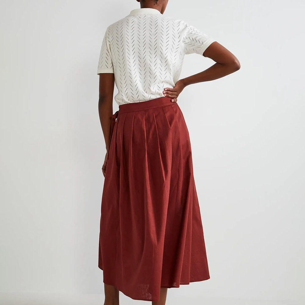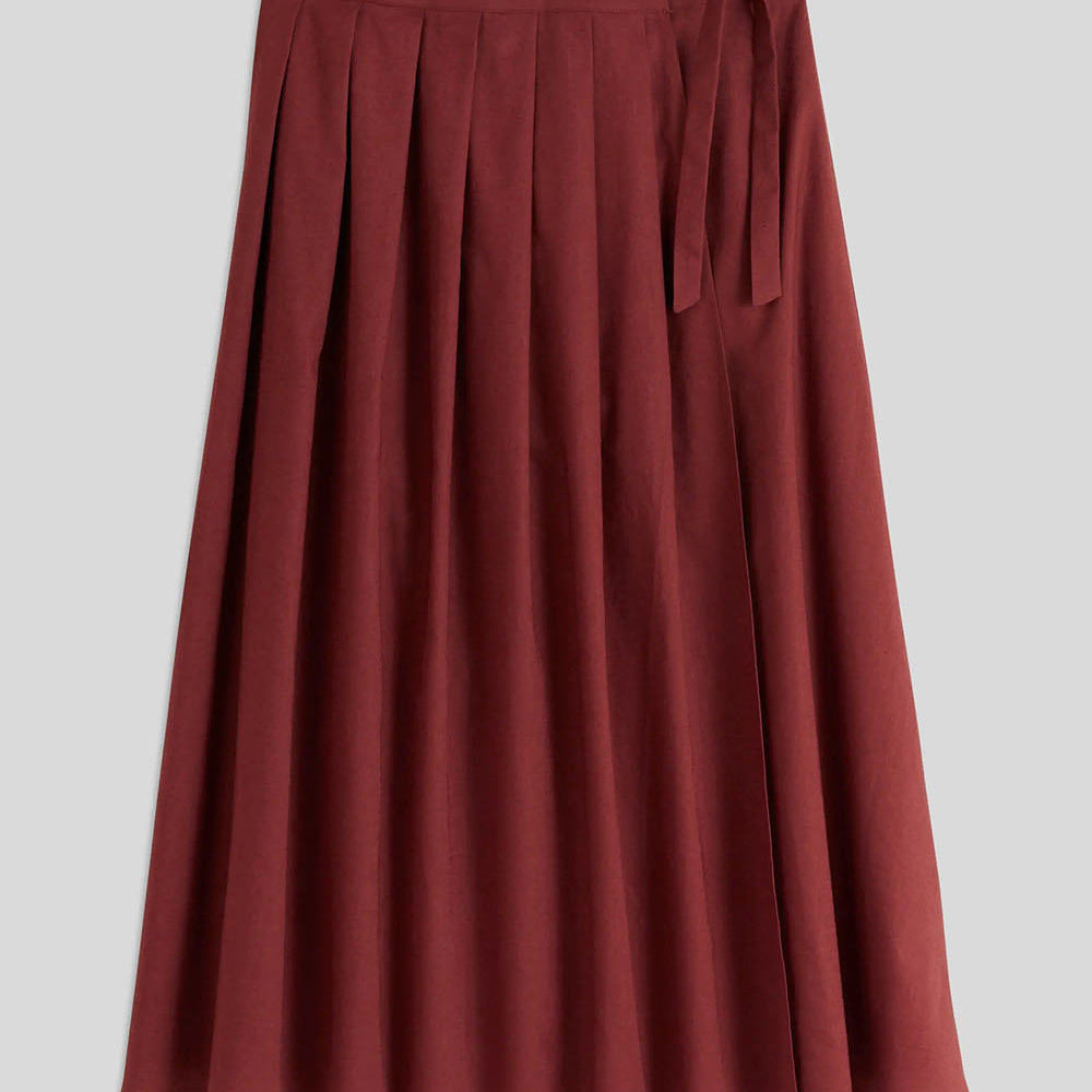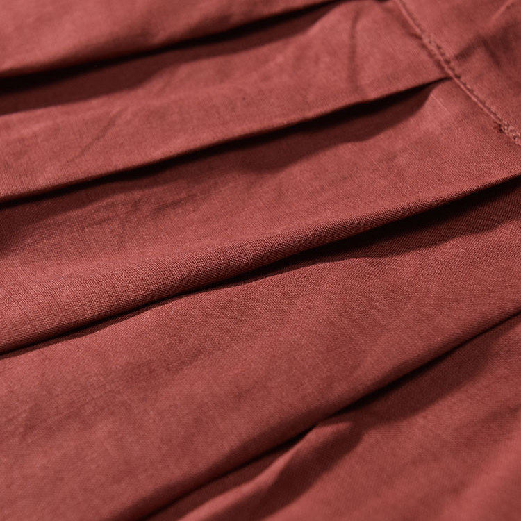 法国时尚棉麻质地中式风格裹身式中长款马面裙百褶半身裙