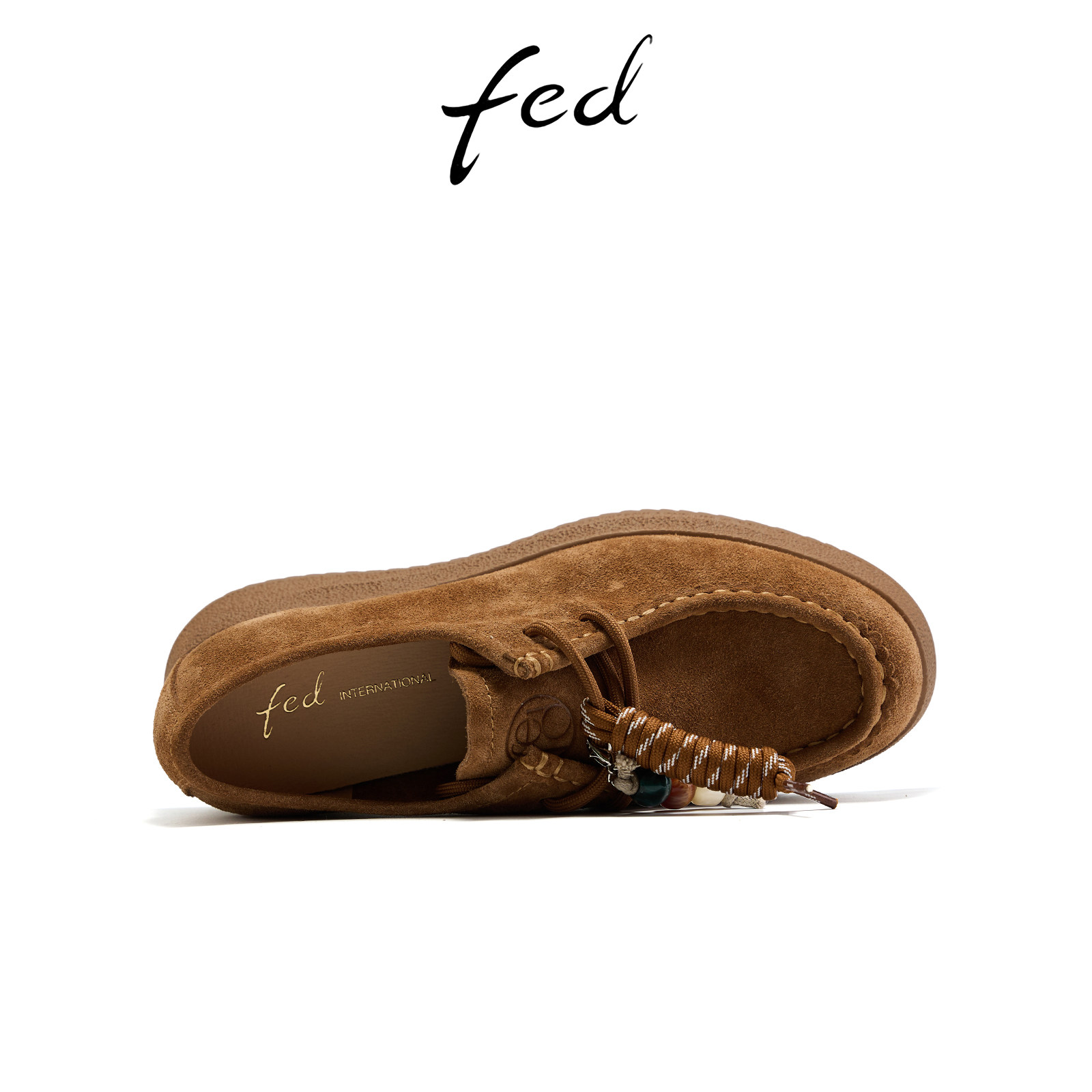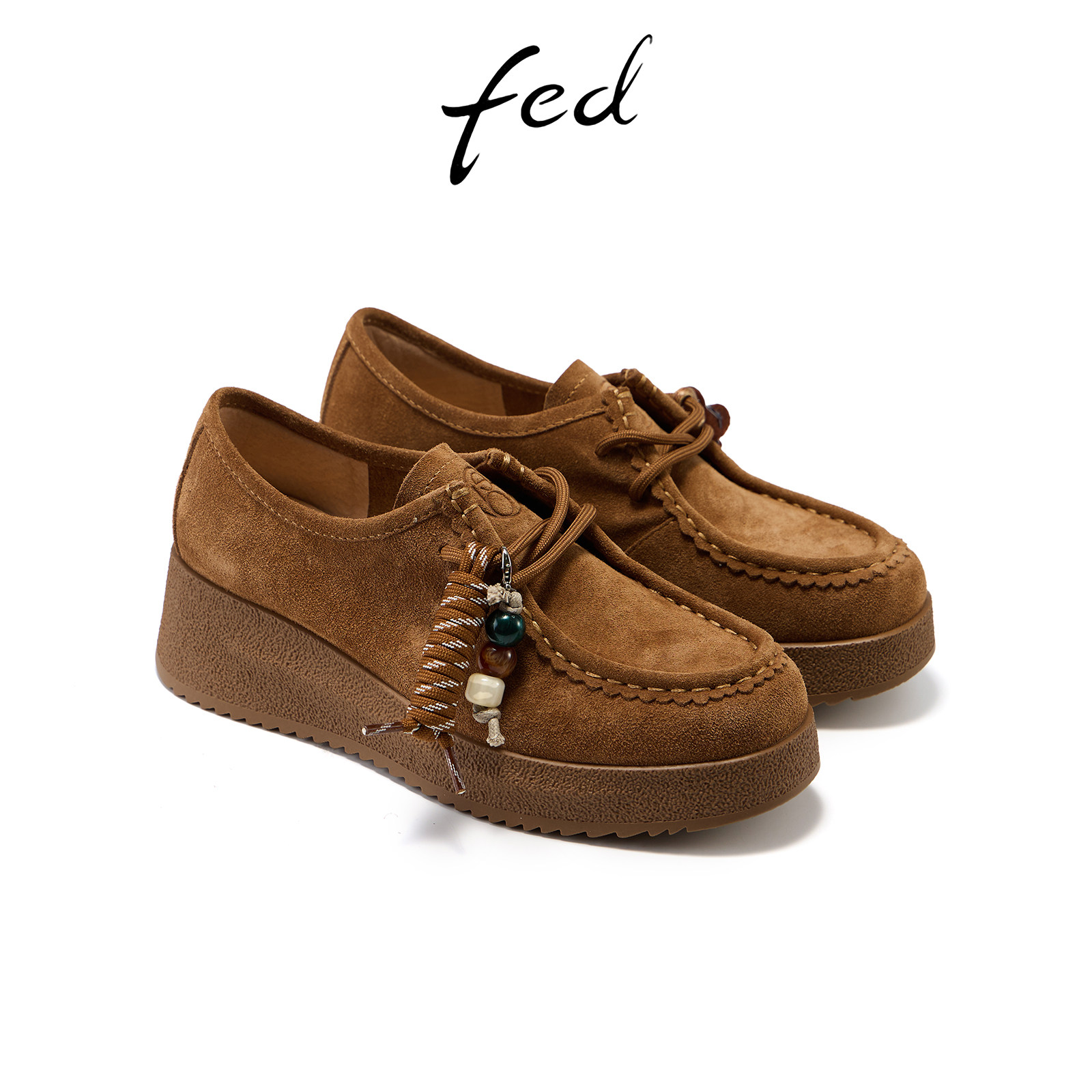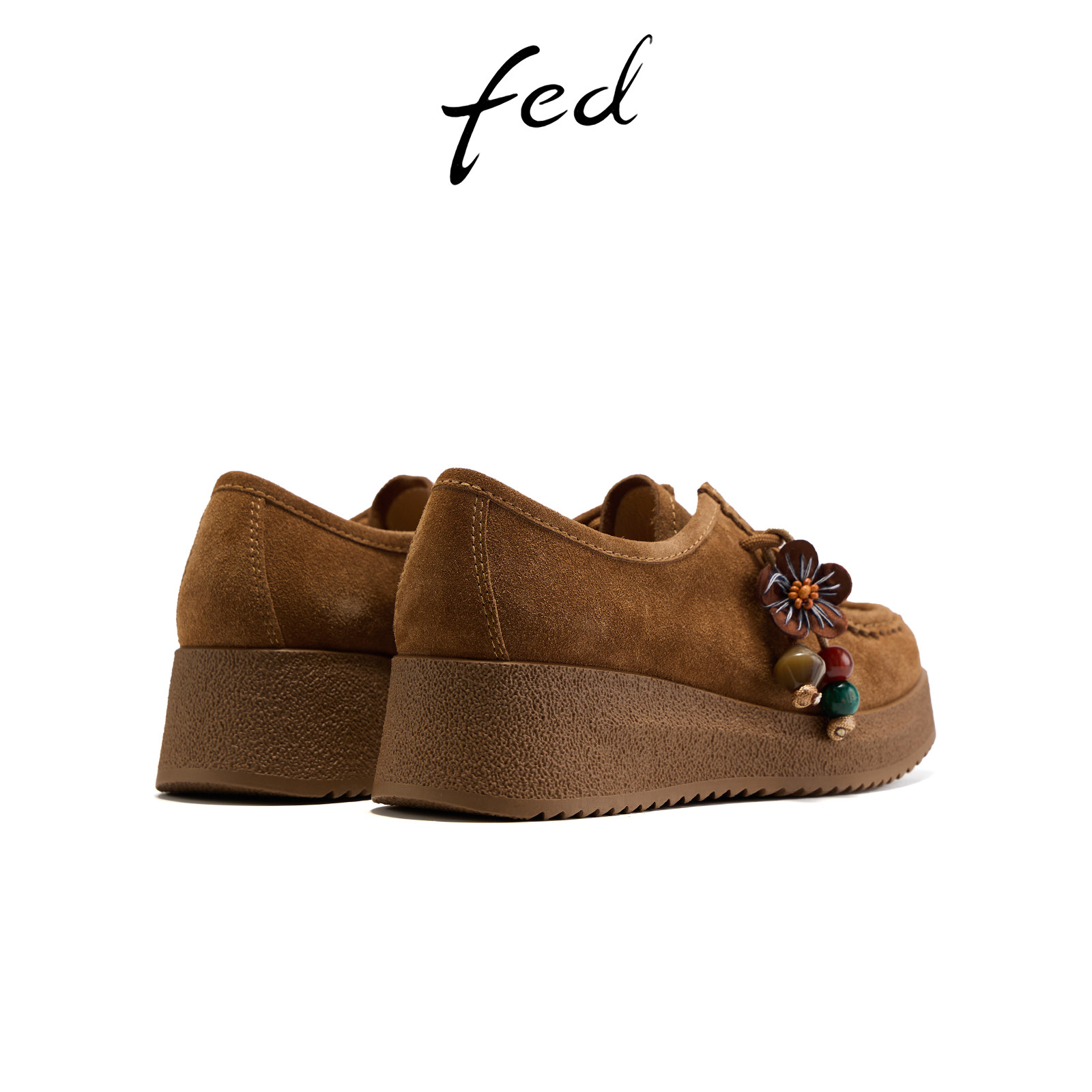 fed陶土珠语单鞋春季新款女鞋坡跟乐福鞋串珠厚底袋鼠鞋女款YA556