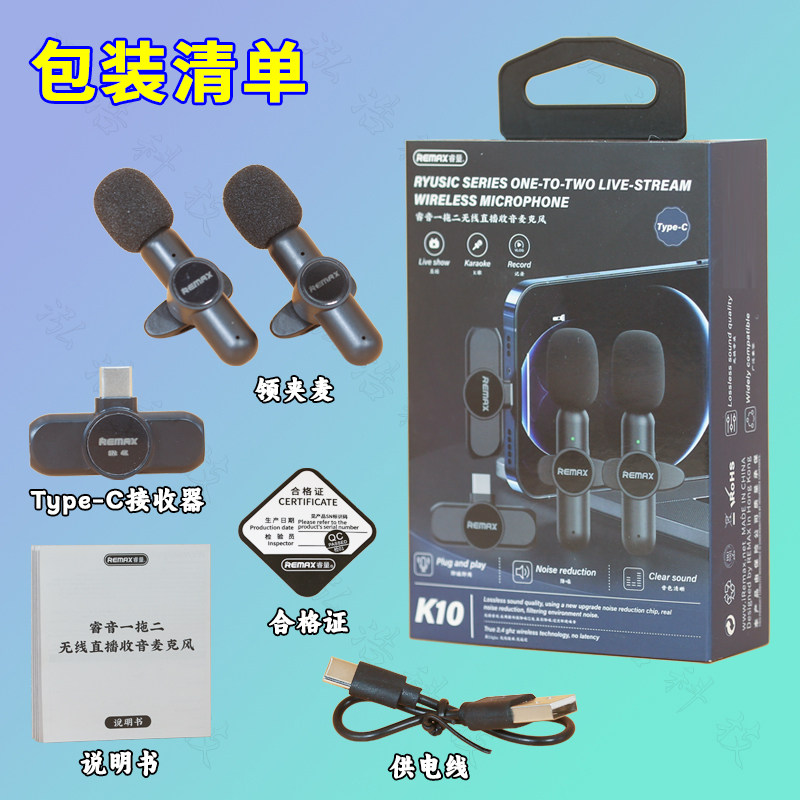 REMAX睿量K10直播录音拍摄视频高清降噪拾音小话筒手机无线领夹麦