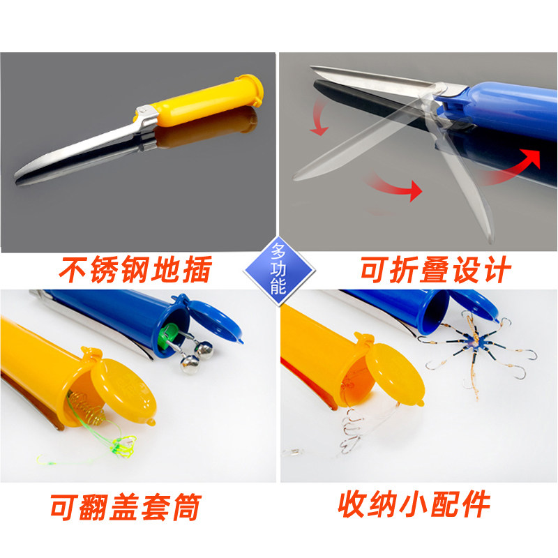 海竿支架鱼杆炮台地插筒不锈钢架杆抛竿支架多功能渔具简易用品