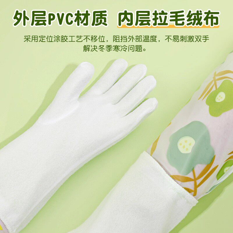 冬季加绒橡胶手套女耐用家务清洁家用厨房洗碗洗衣服刷锅防水加厚