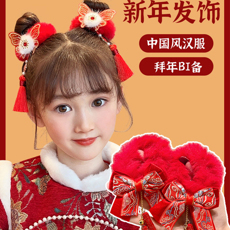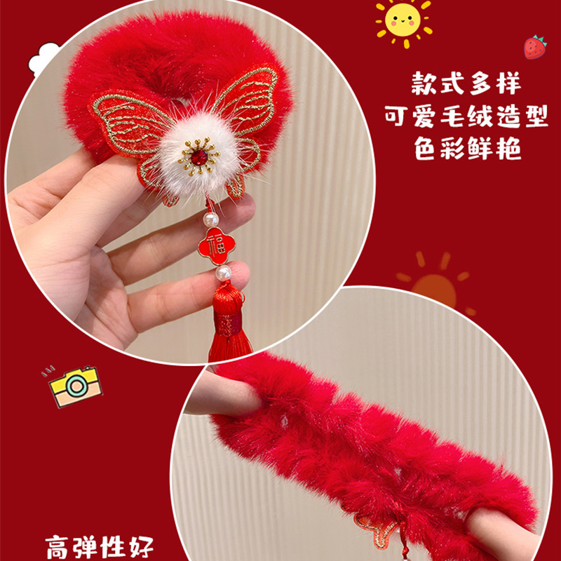 宝宝新年红色毛绒发圈儿童头绳2026新款国风发绳女童过年汉服发饰