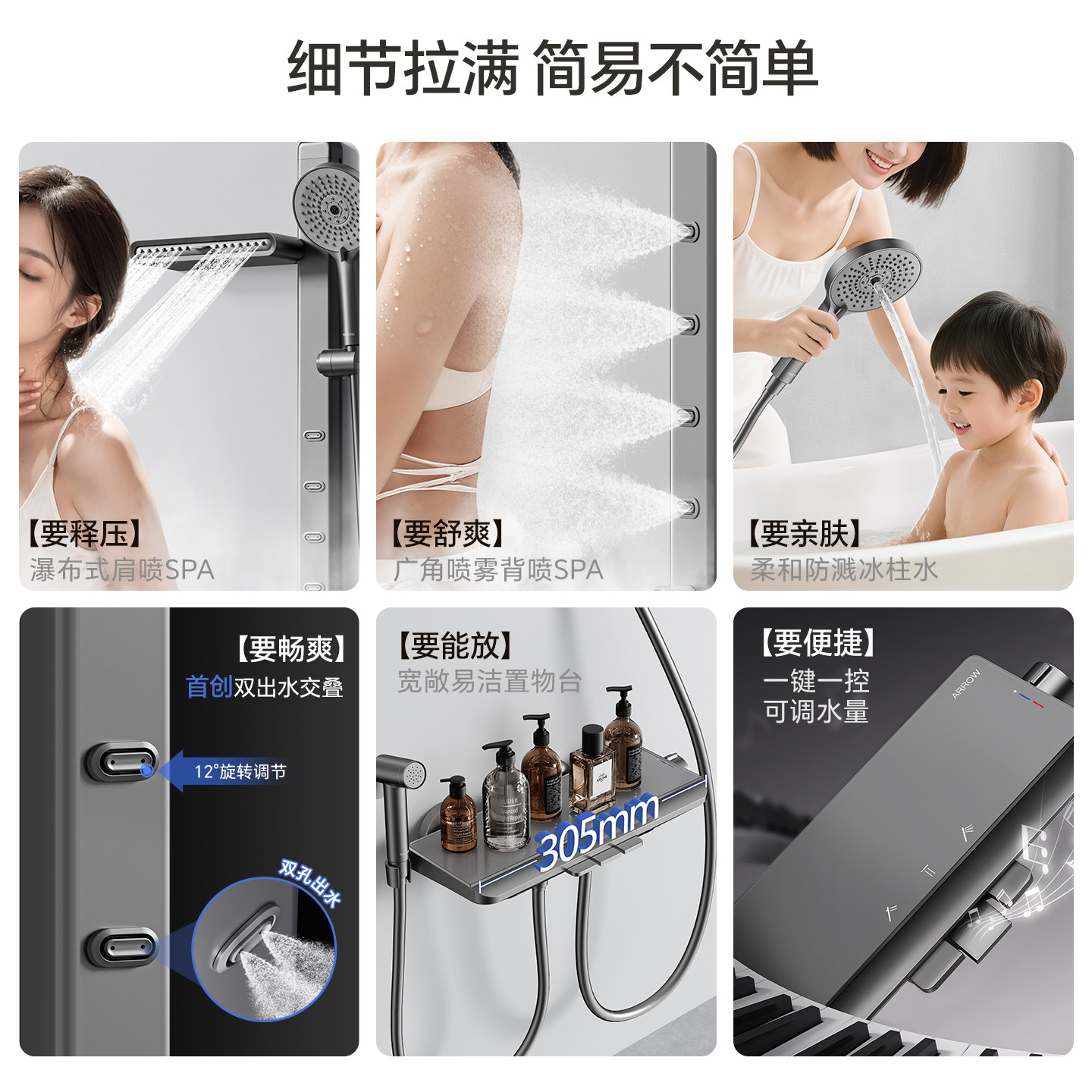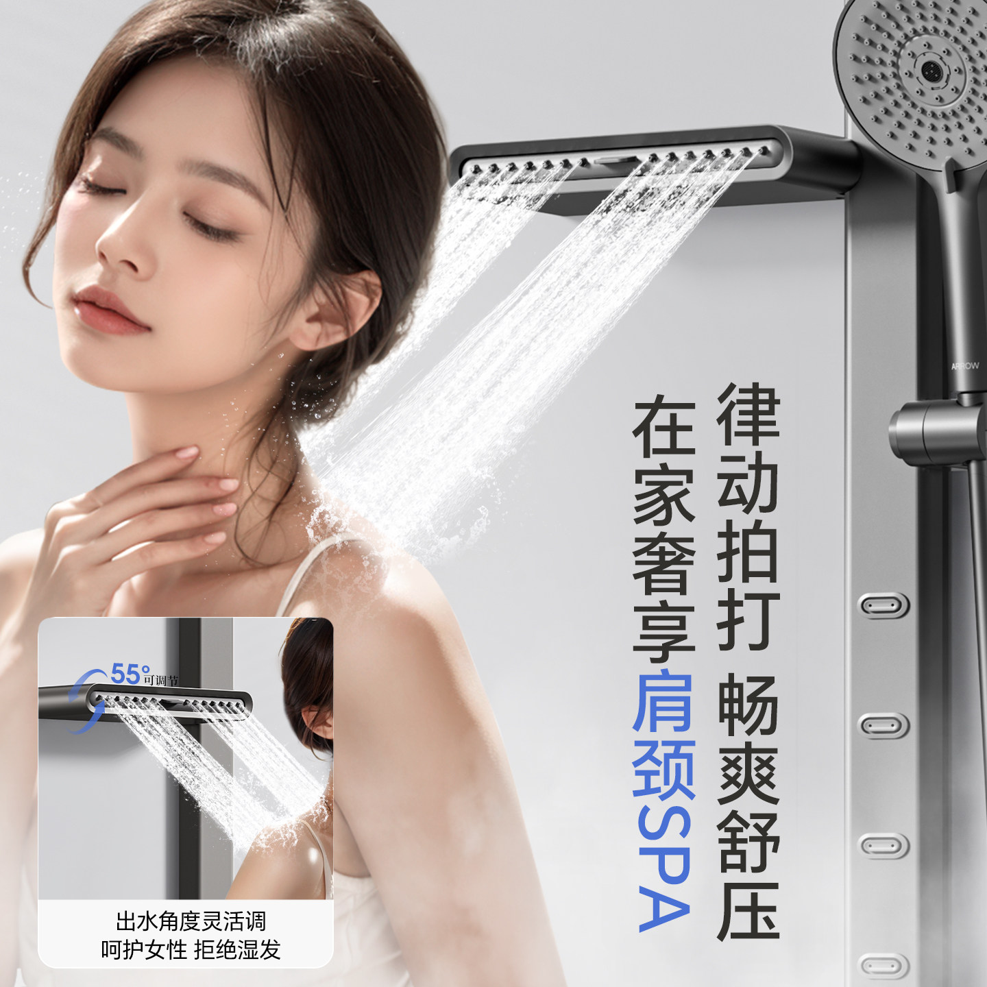 箭牌淋浴花洒套装枪灰淋浴器背喷花洒简易浴缸水龙头家用增压喷头