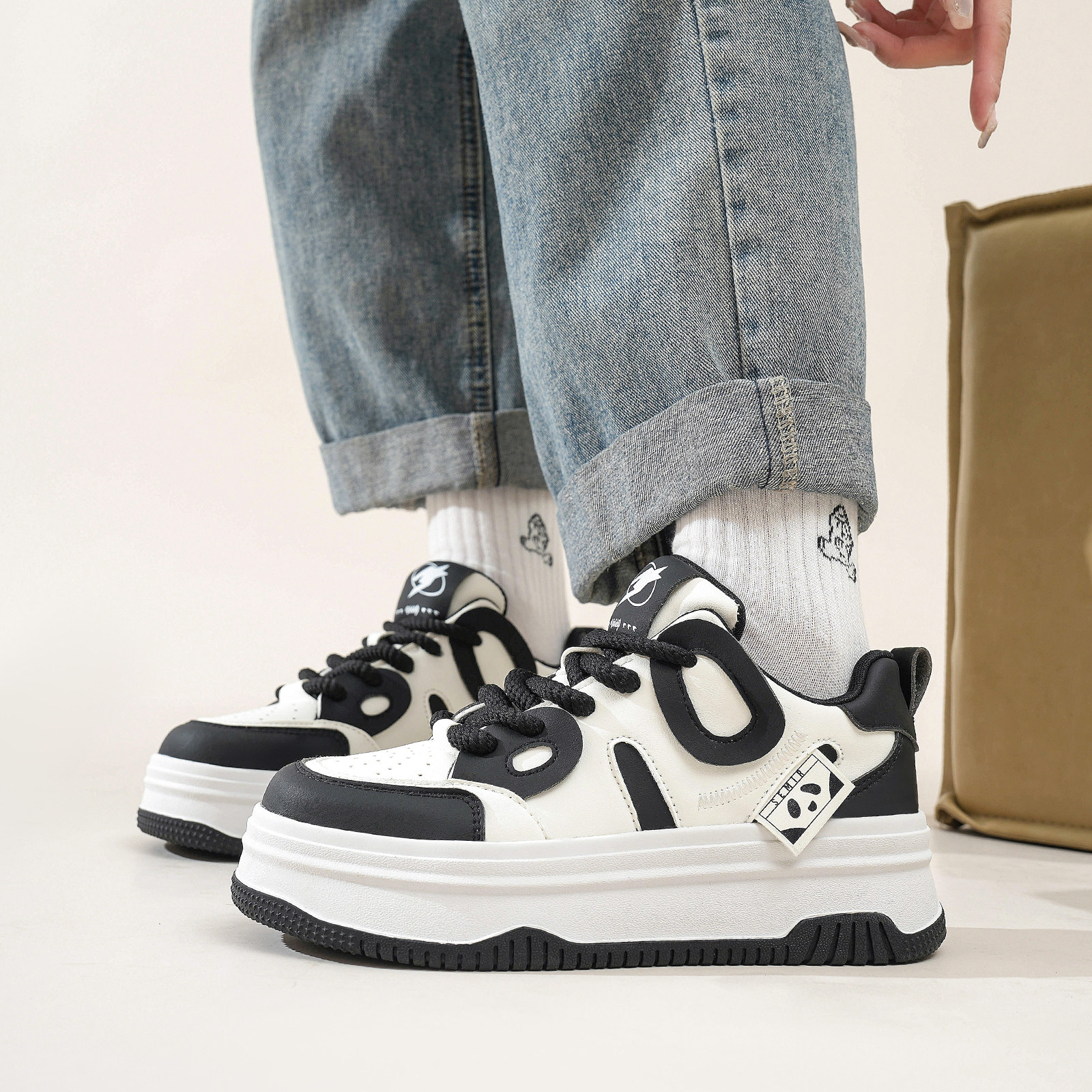 Semir女鞋板鞋2026春季新款ins潮百搭小众休闲板鞋厚底圆头面包鞋