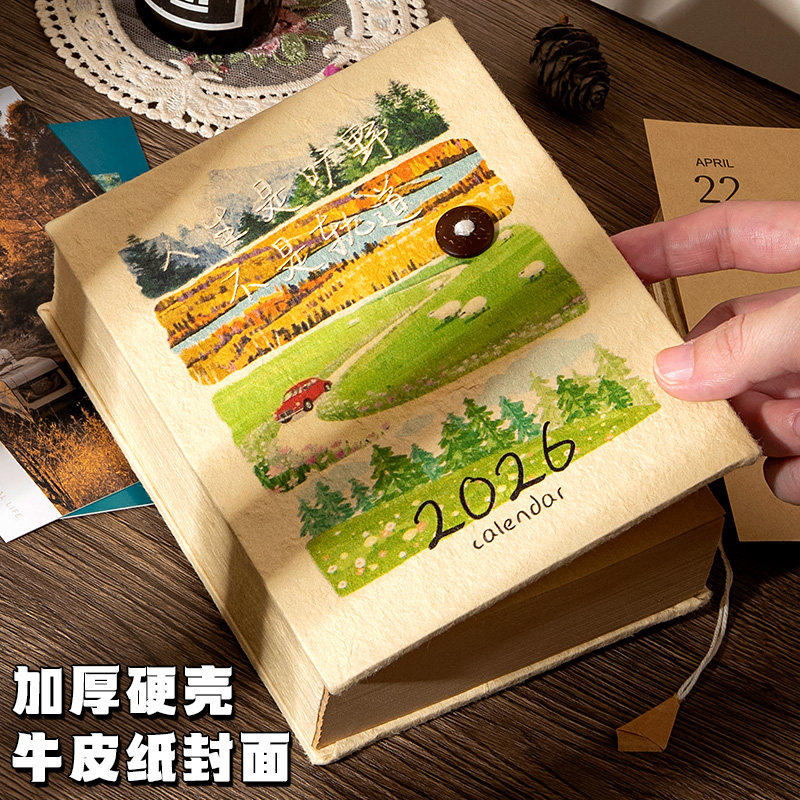 2026年台历礼盒装创意简约办公月历定制笔筒木质桌面摆件马年打卡日历计划本记事历新年礼品物流保险银行台历