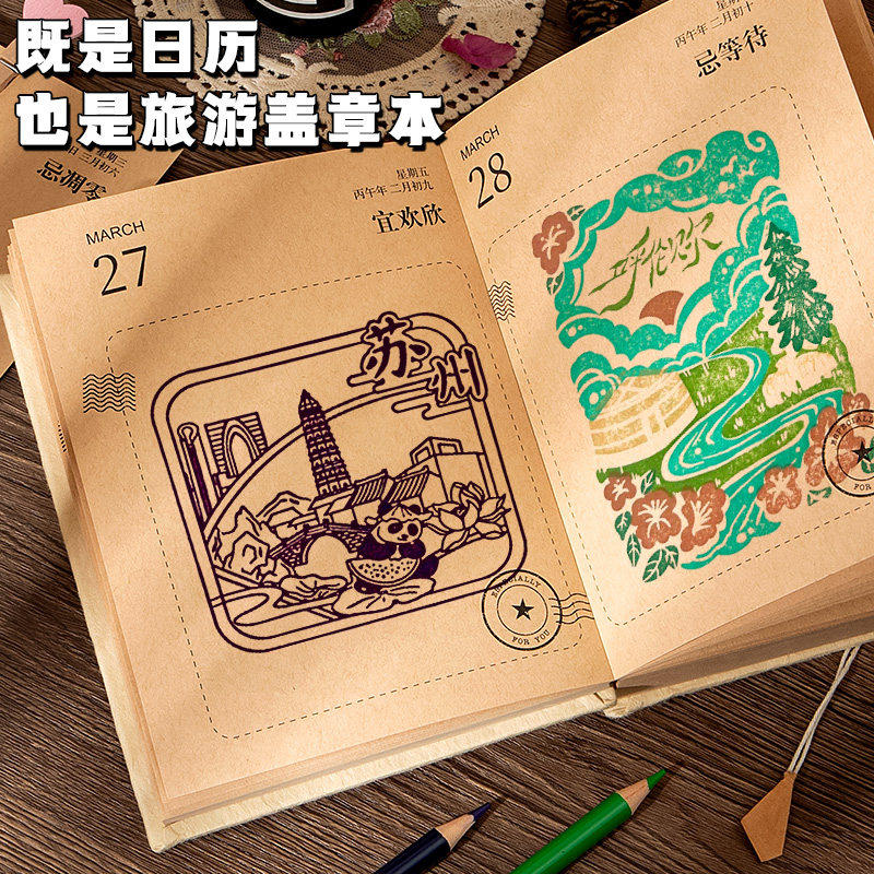 尼泊尔日历本365天2026新款盖章本diy旅游打卡收集本子高颜值桌面台历计划每日一页可撕解压生日礼物手帐本