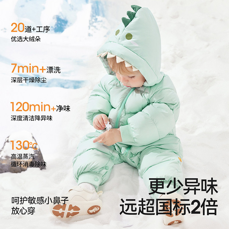 贝肽斯宝宝羽绒服连体衣2025秋冬新款男女童婴儿爬服抱衣外出保暖