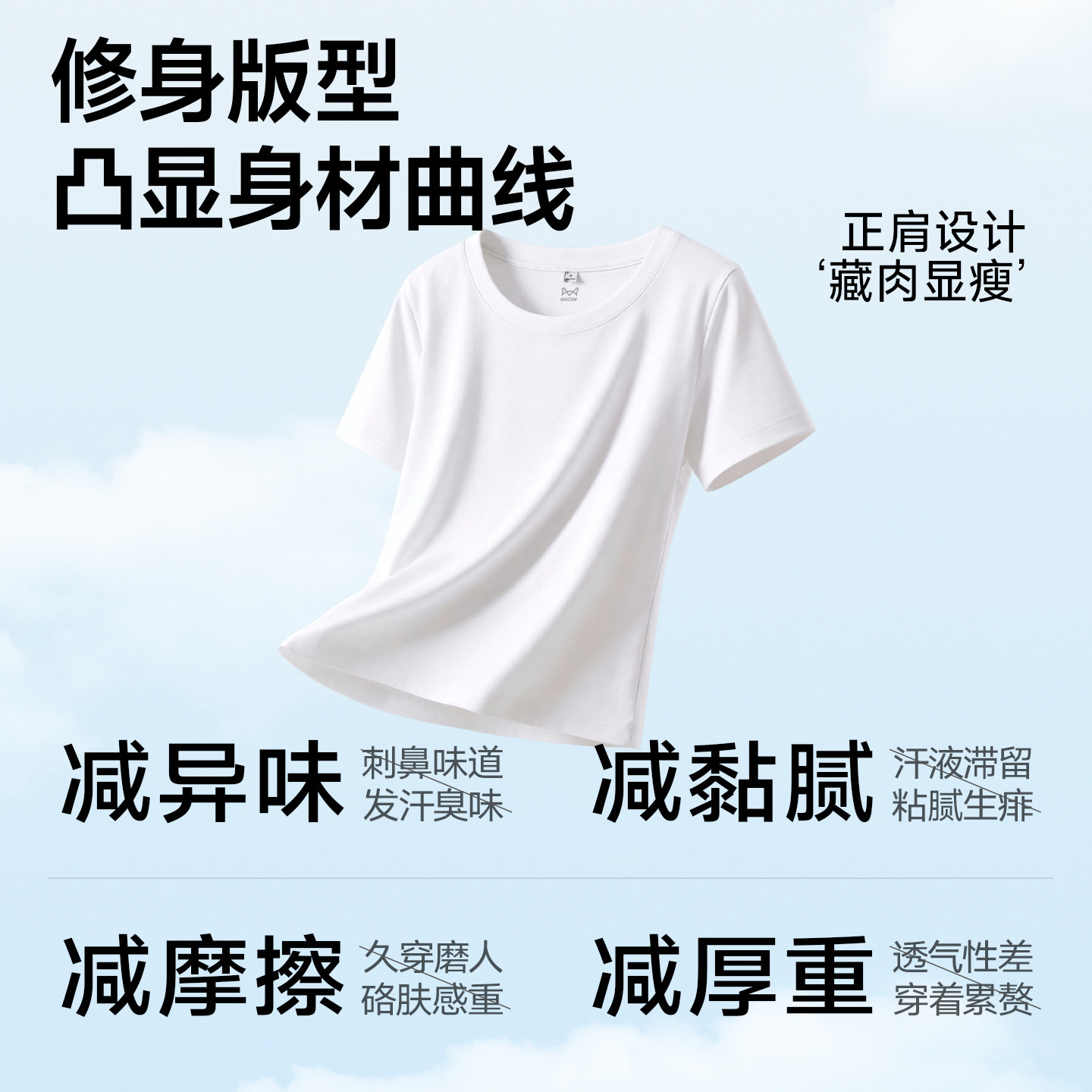 猫人白色圆领短袖T恤女2026年夏季新款修身半袖纯色正肩打底上衣Z