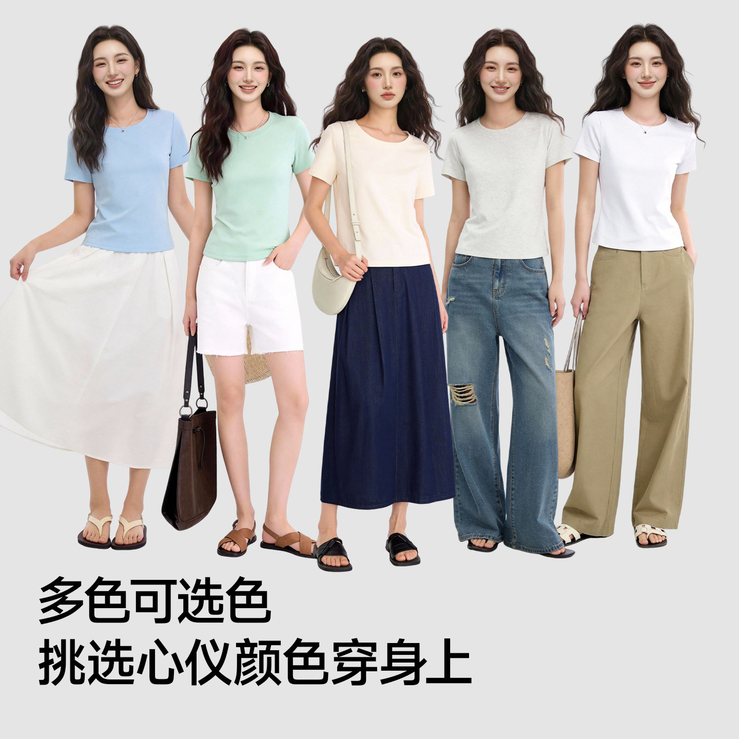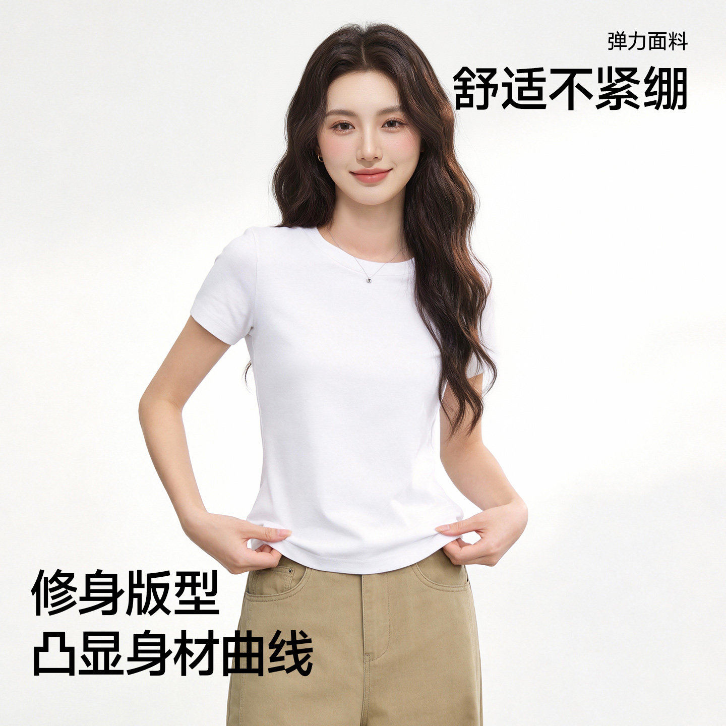 陈都灵丨凉感T森马短袖T恤女修身纯色基础夏季新款圆领白色女装