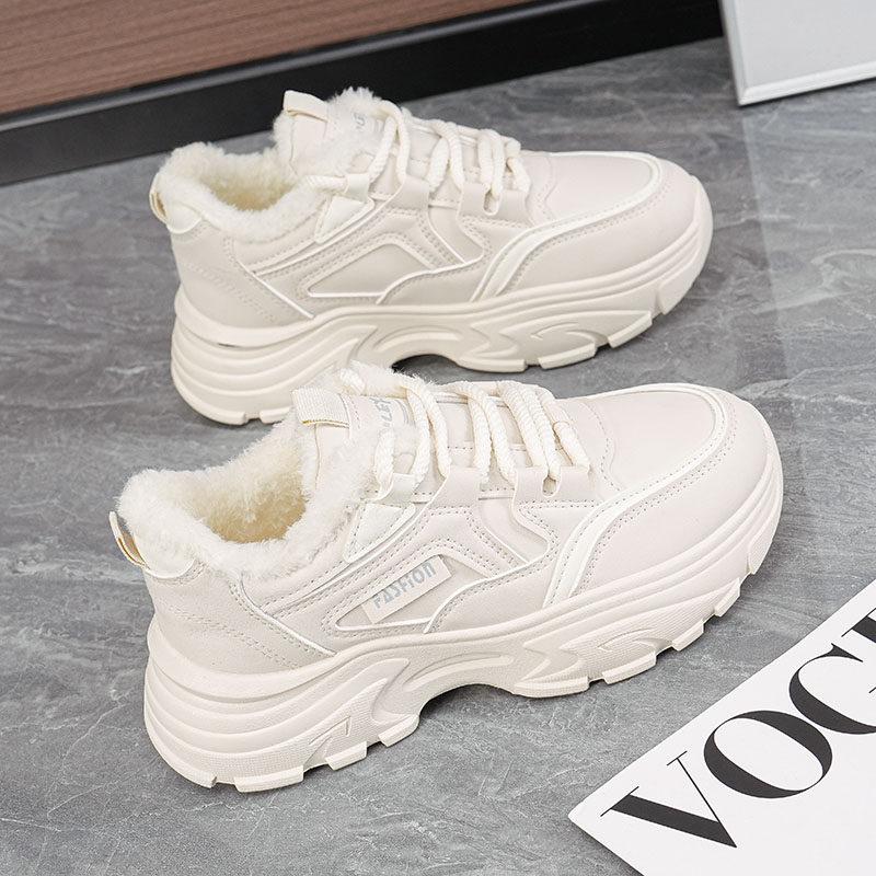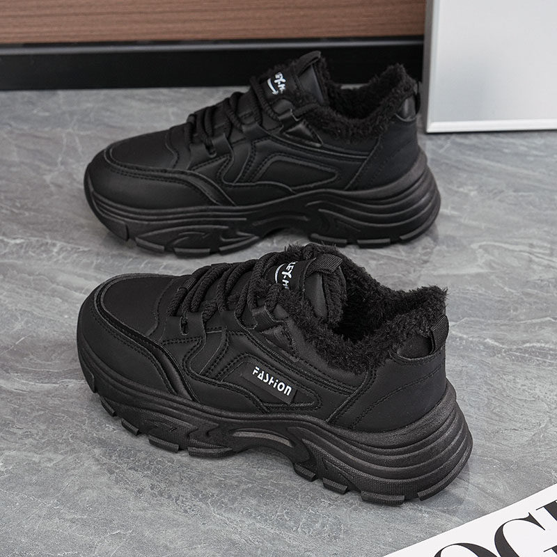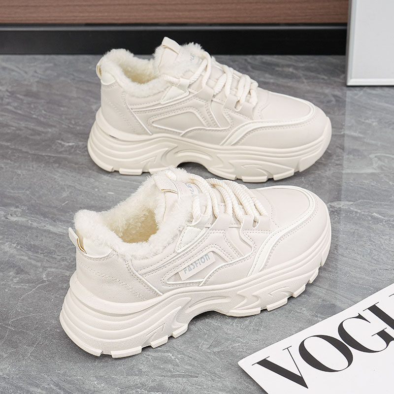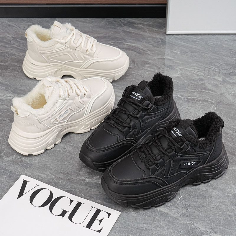 加绒女鞋冬季2025新款老爹鞋厚底增高小白潮鞋爆款运动休闲二棉鞋