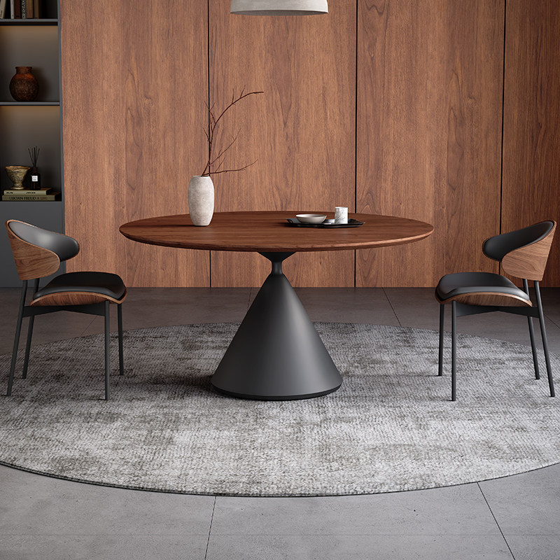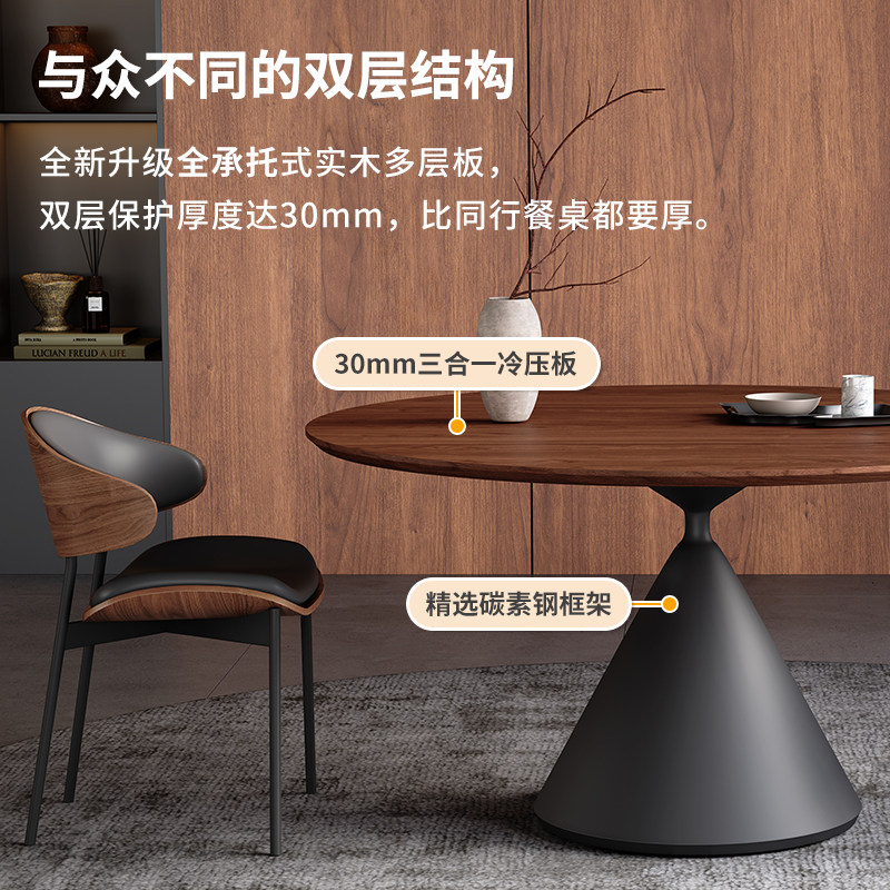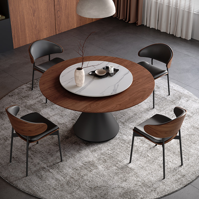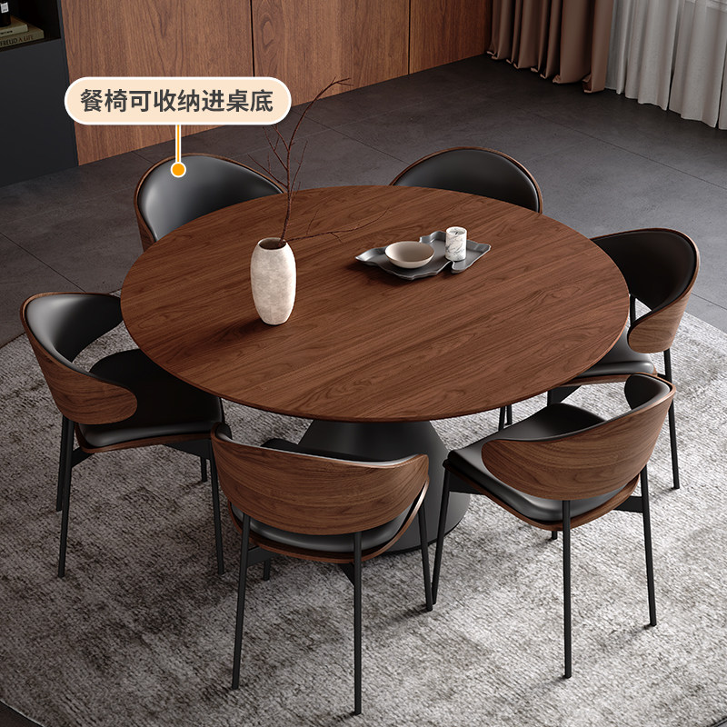 中古风实木餐桌圆形小户型客厅2026新款实木面1.2米圆桌带转盘