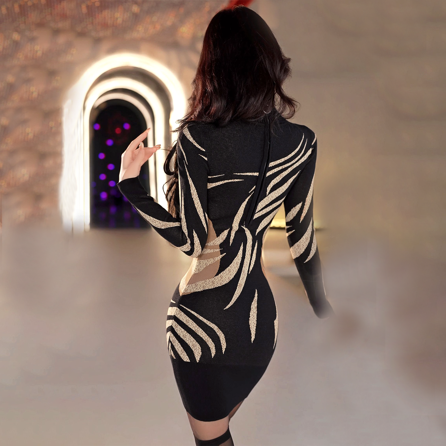 拼色ktv性感足浴桑拿技师工作服夜总会性感开叉晚礼服显瘦连衣裙