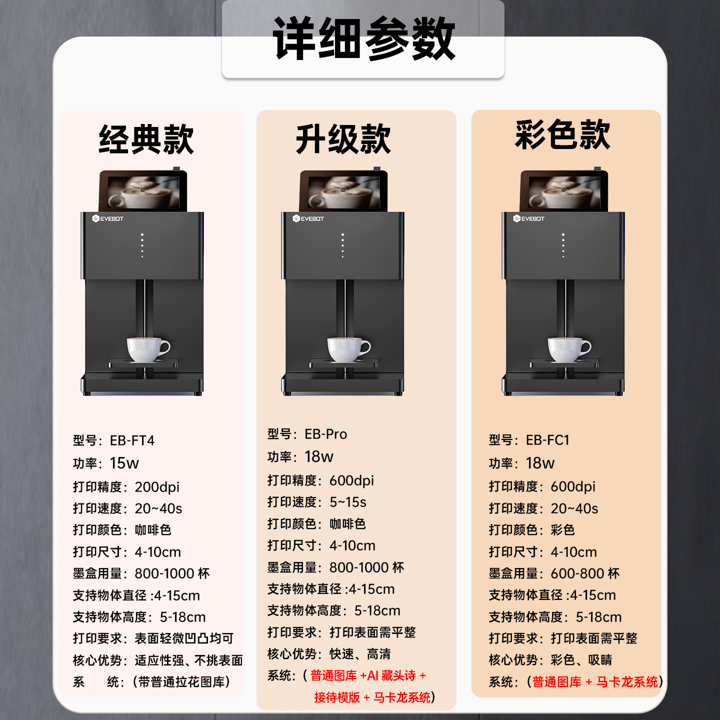 EVEBOT亿瓦3D咖啡拉花打印机 酸奶口布团扇口布AI藏头诗主题宴彩色马卡龙批量文创美食打印机台式商用咖啡机