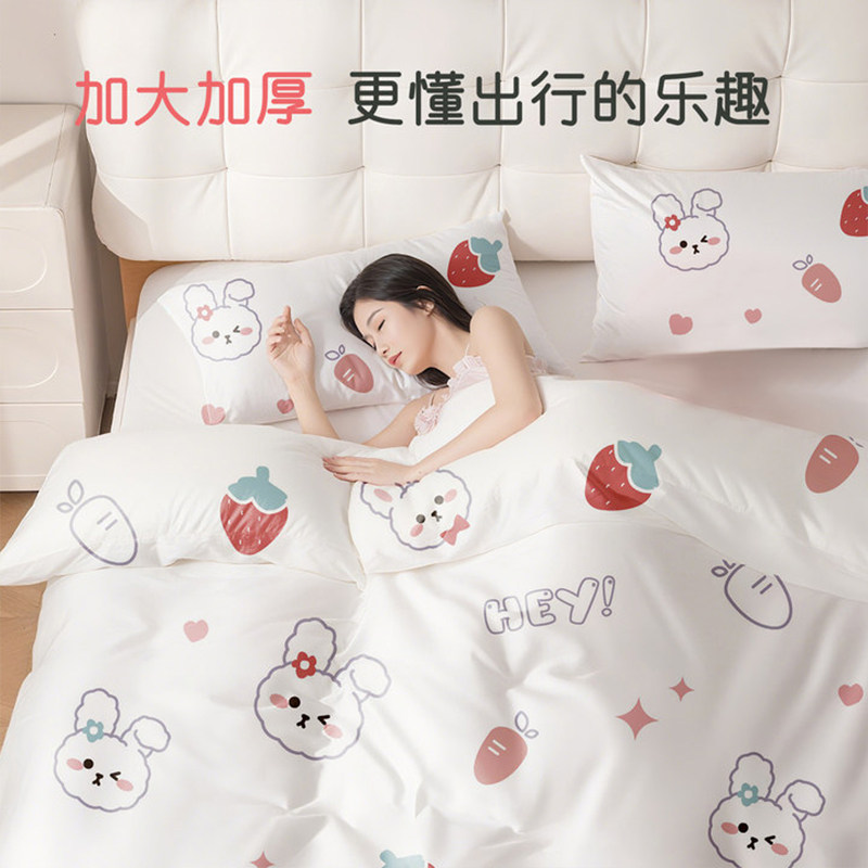 旅行一次性床单被罩枕套酒店出差双人床四件套装加厚隔脏印花睡袋