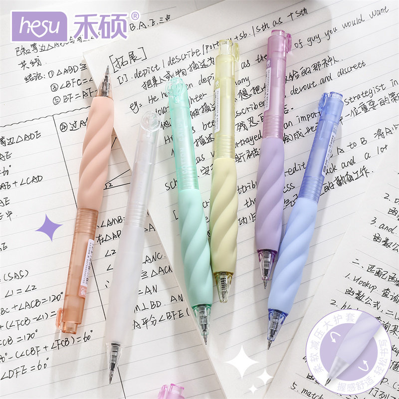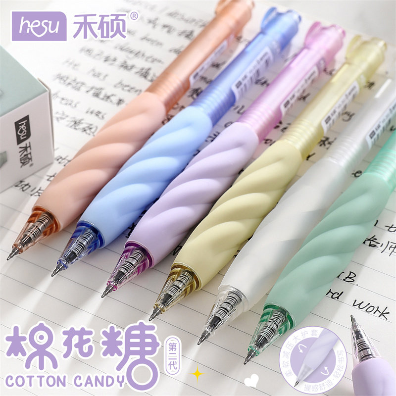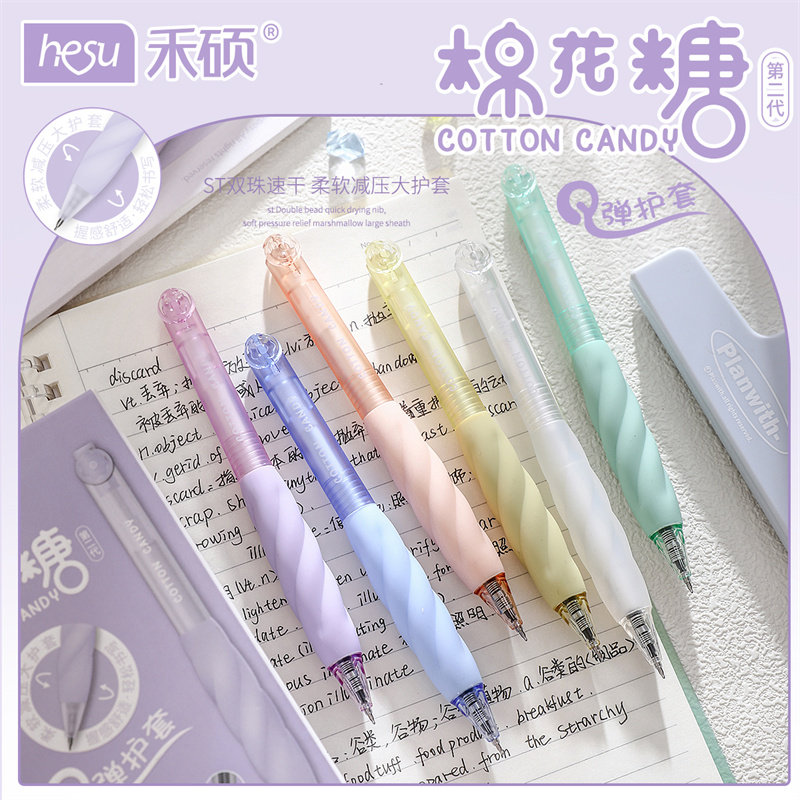 禾硕棉花糖201按动笔超软护套速干顺滑刷题黑笔ST头速干耐用简约0.5中性笔高颜值学生不咯手考试黑水笔