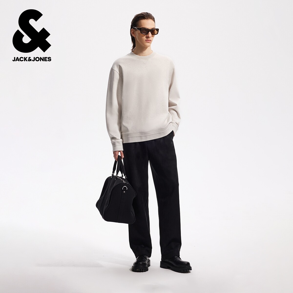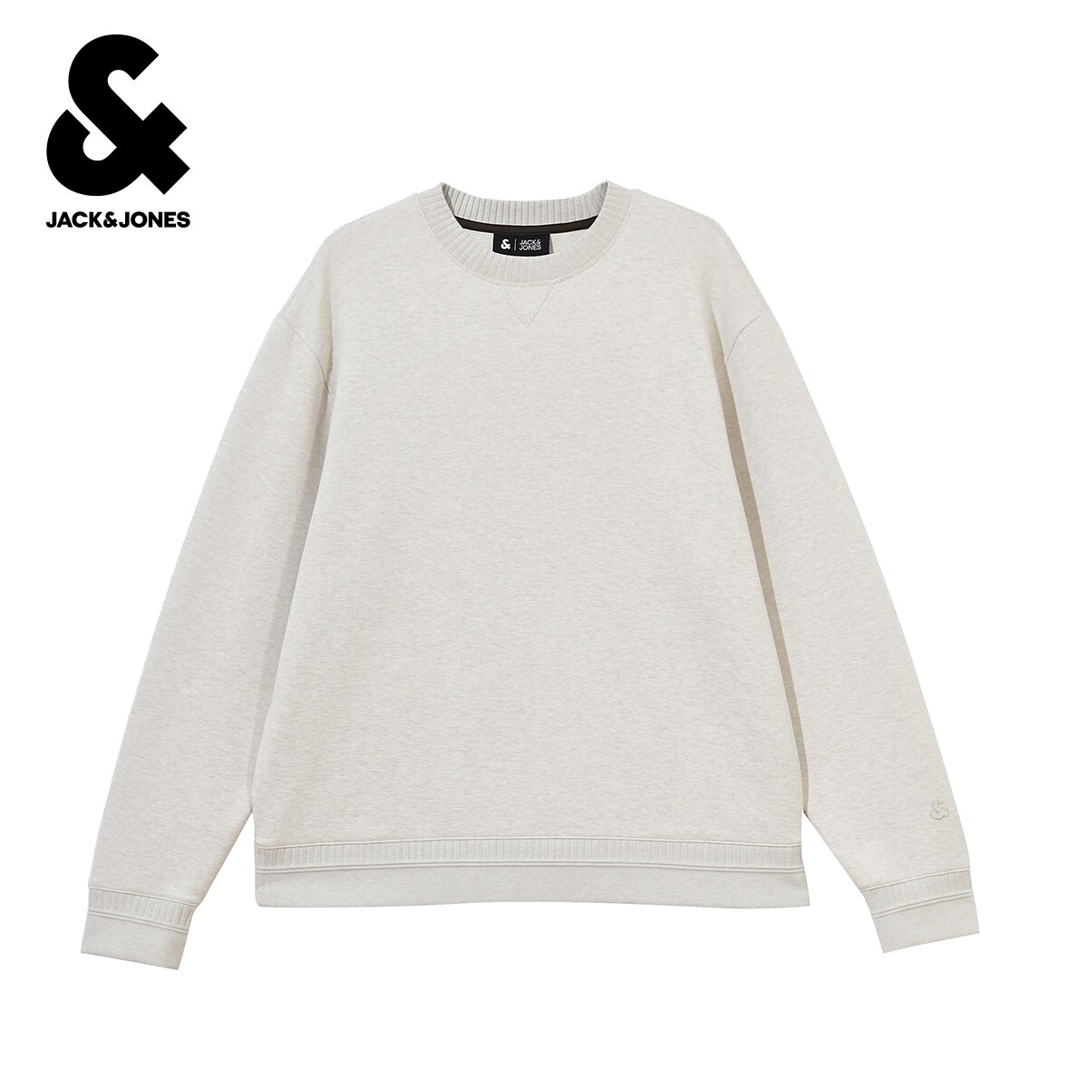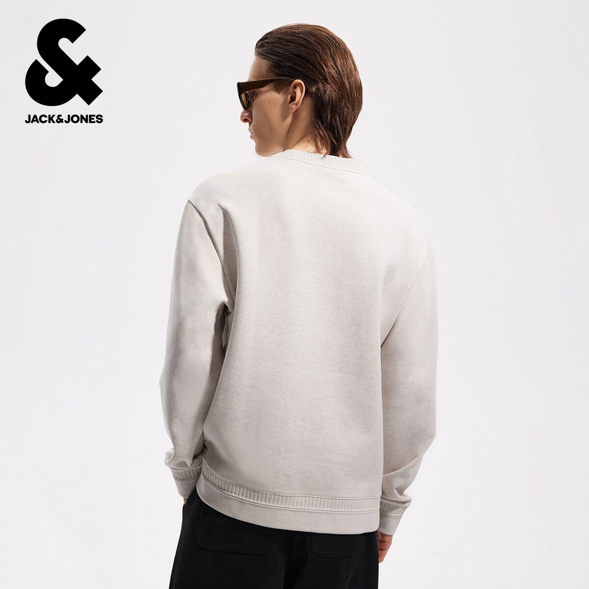 杰克琼斯男装春季卫衣简约罗纹圆领宽松舒适潮流时尚长袖织花上衣
