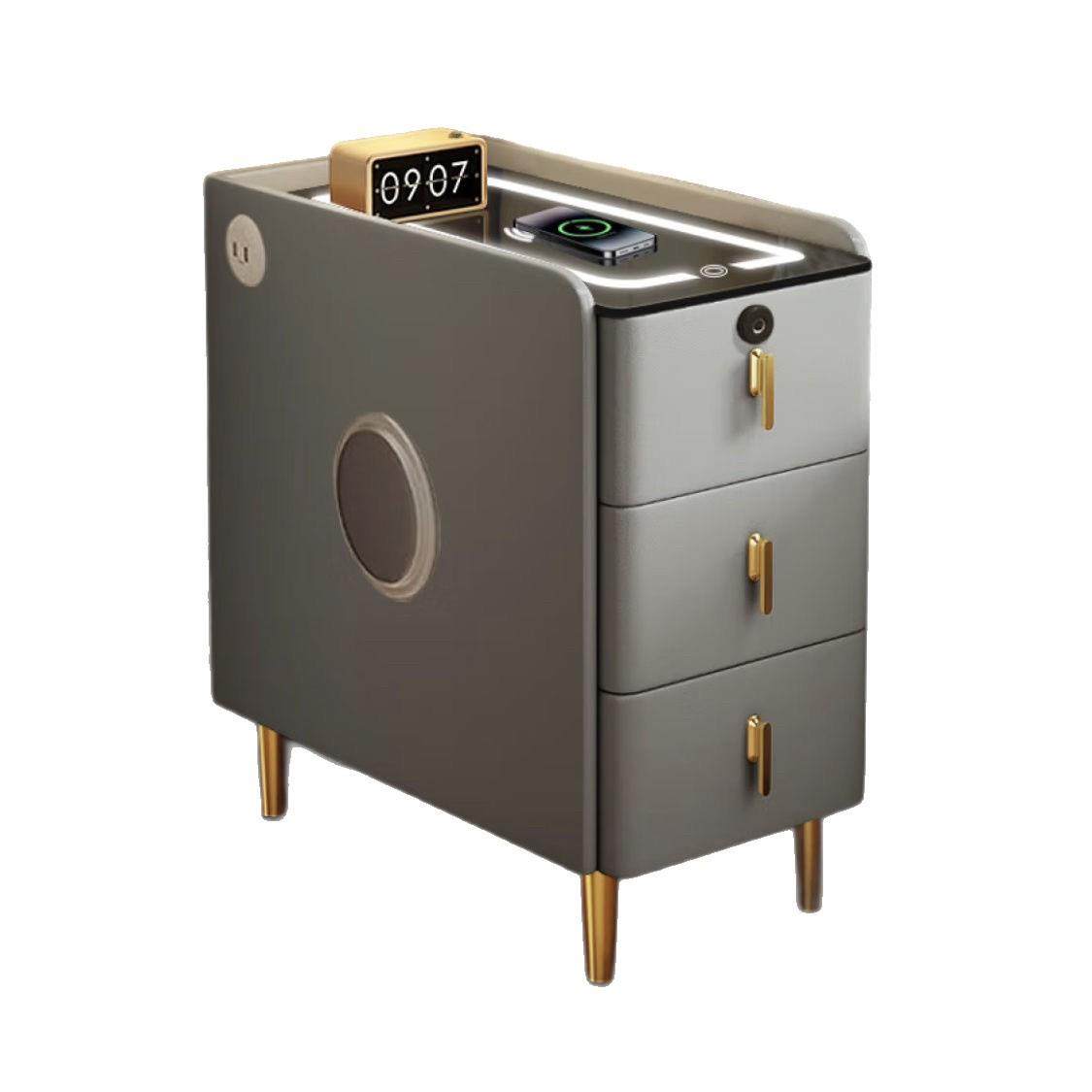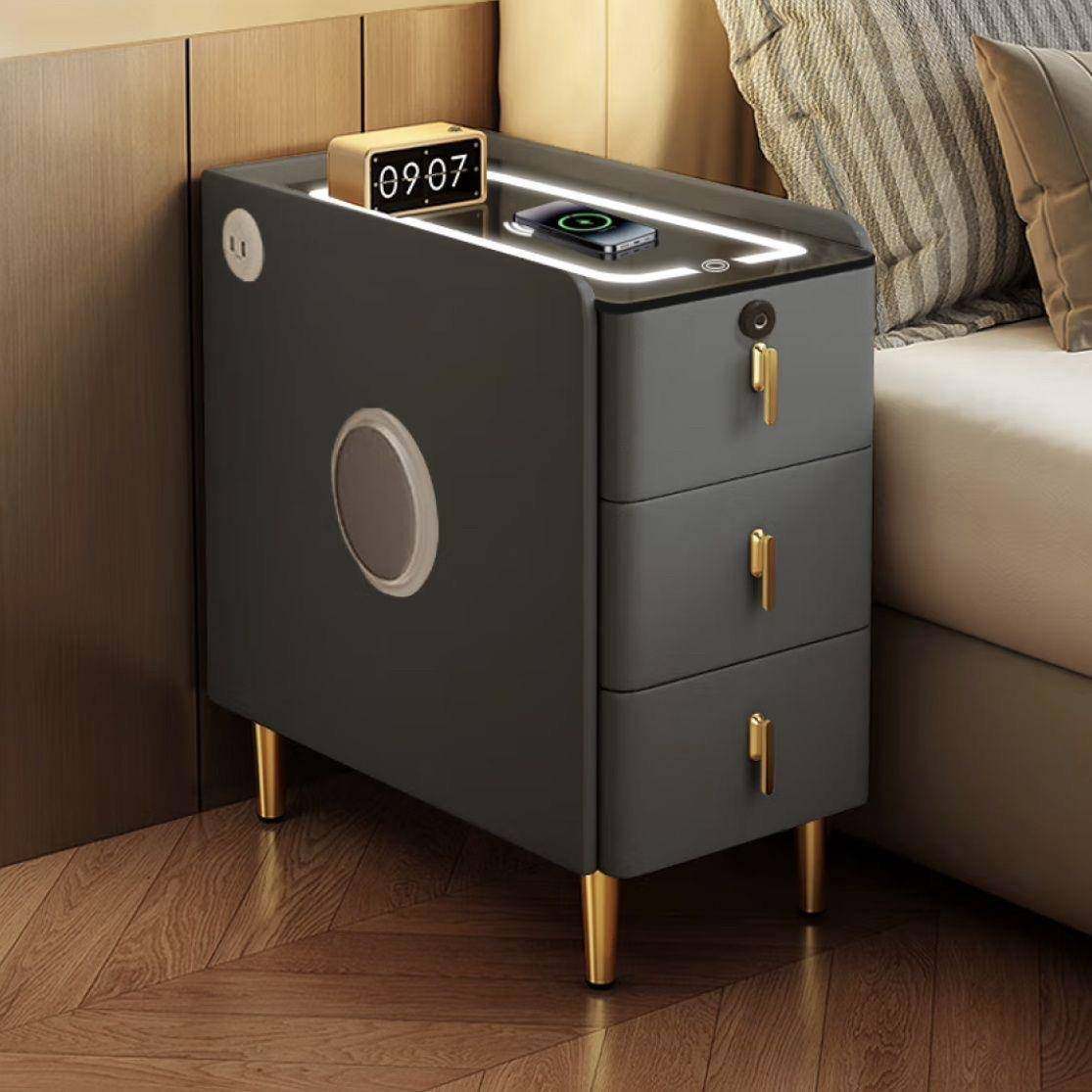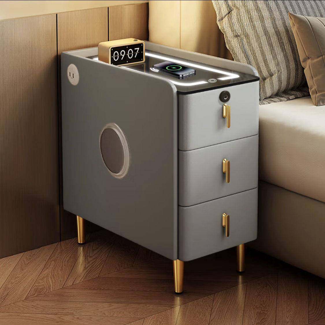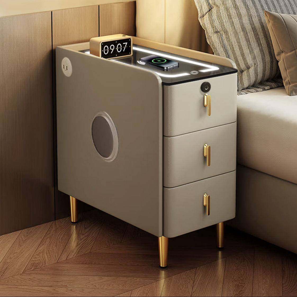 小型实木智能床头柜现代简约床边柜多功能家用卧室床头收纳柜整装