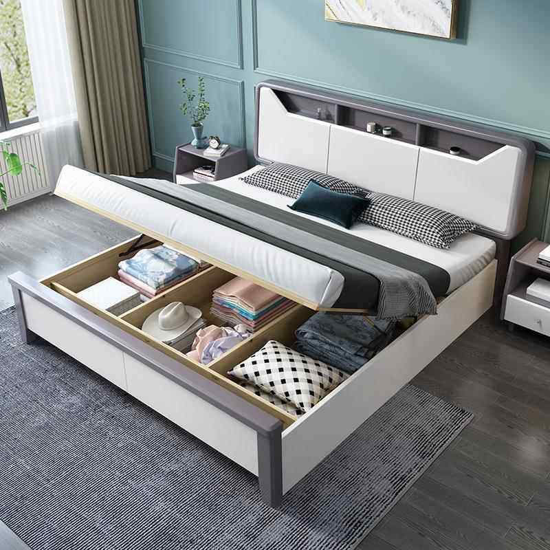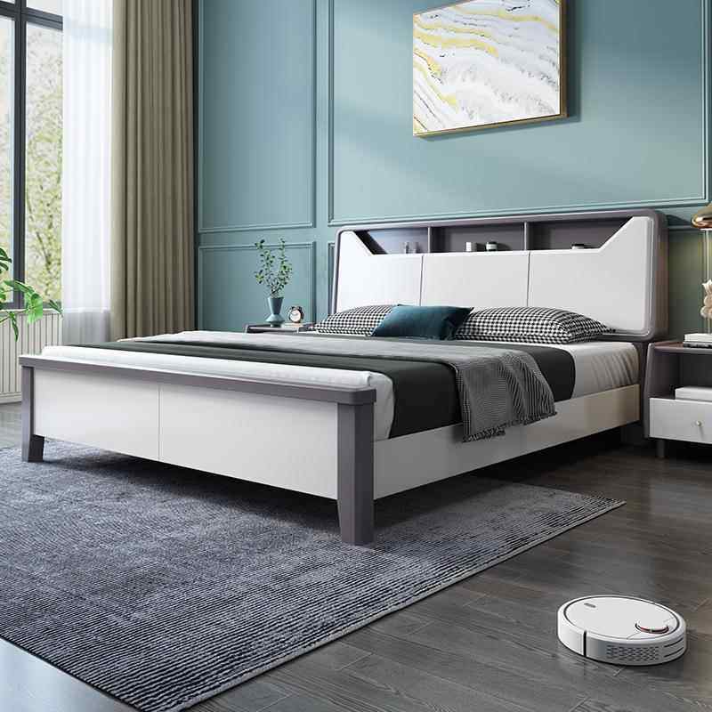 白色实木床1.8米双人床现代简约1.5m主卧经济型储物民宿高箱婚床