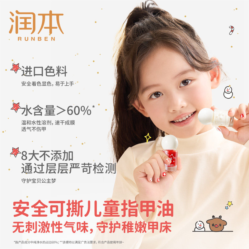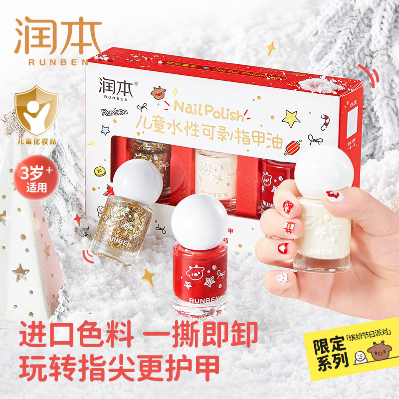 润本润本儿童可剥指甲油三色水性可撕拉女孩速干美甲圣诞新年礼物
