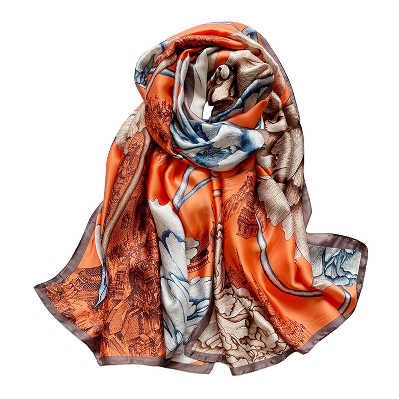杭州丝绸洋气长款欧美风夏季防晒真丝丝巾女外搭围巾披肩保暖两用