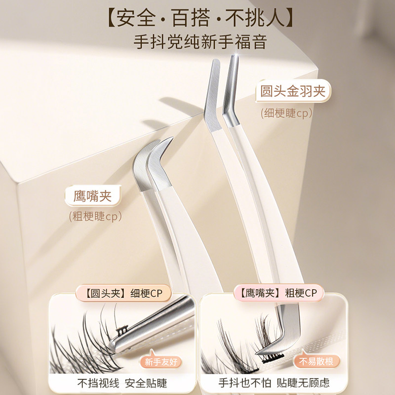 免胶假睫毛镊子夹子专业高精度美睫师嫁接工具睫毛金羽夹新手圆头