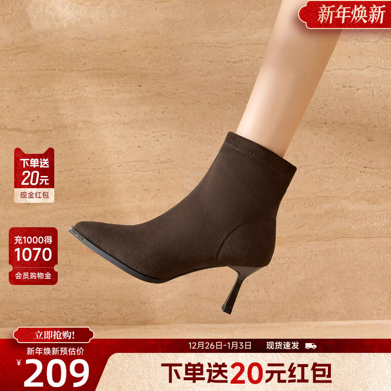 戈美其瘦瘦靴女2025秋冬季新款尖头气质短靴复古细跟高跟时装靴