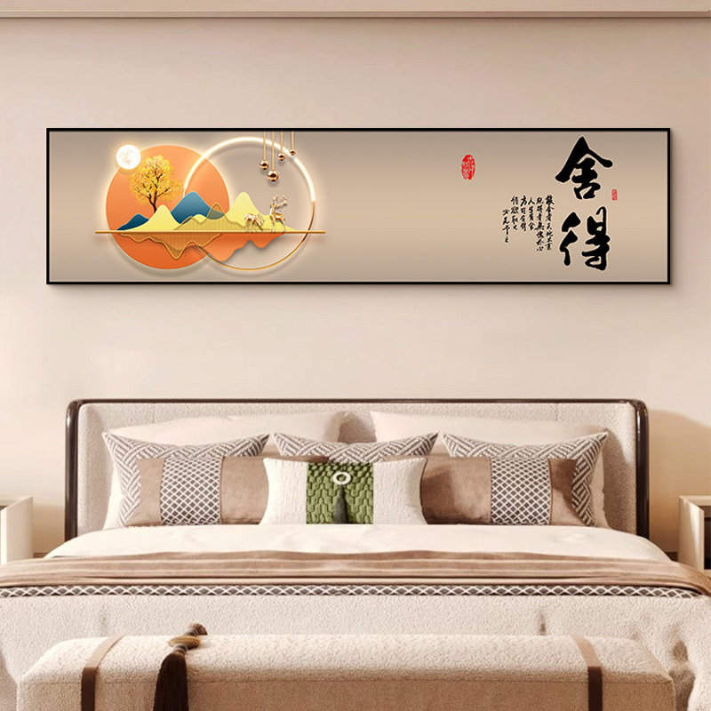 床头贴画装饰画客厅沙发背景自粘卧室墙贴3D现代风景轻奢山水墙纸