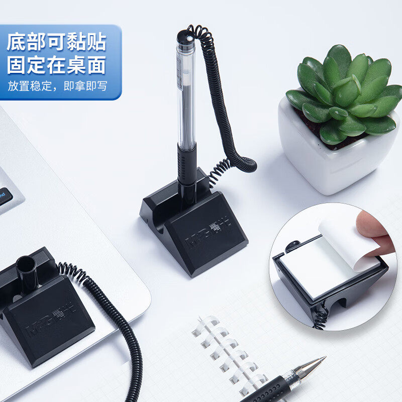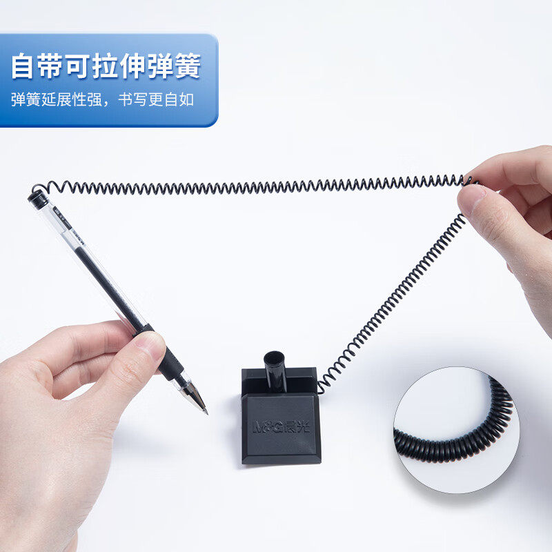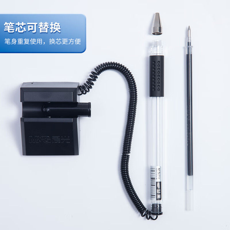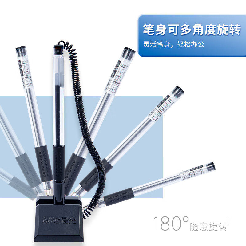 晨光0.5mm台笔前台碳素笔办公中性笔柜台桌面可粘贴固定带绳吧台笔银行水笔粘桌黑色商务签字办公文具用品Q7