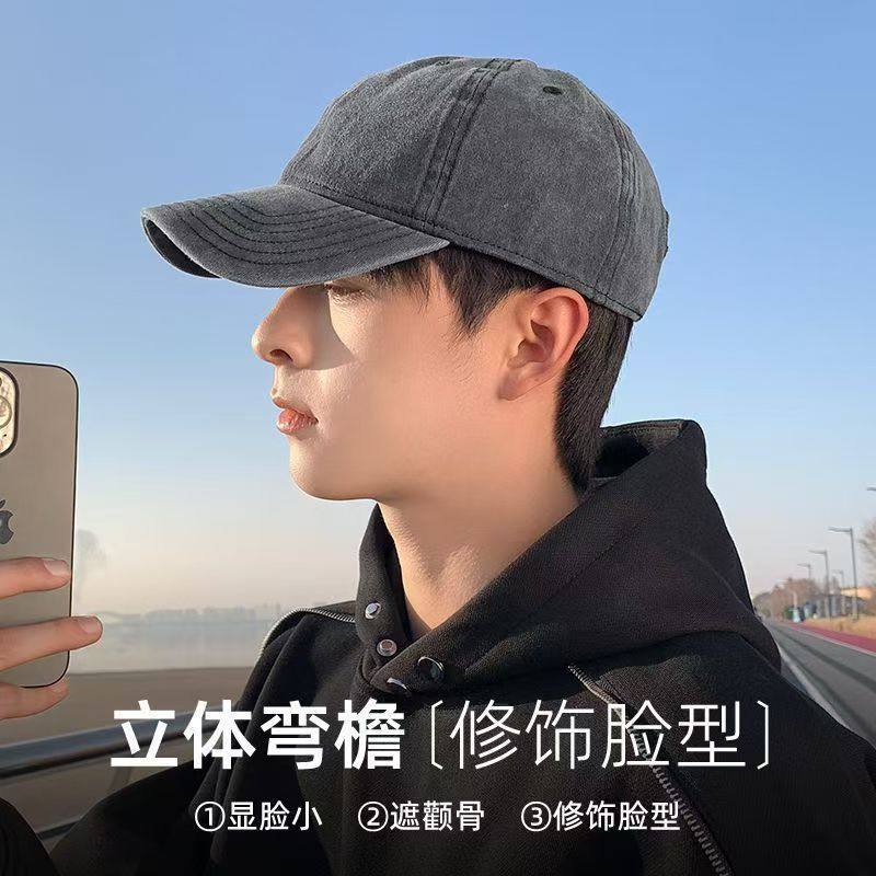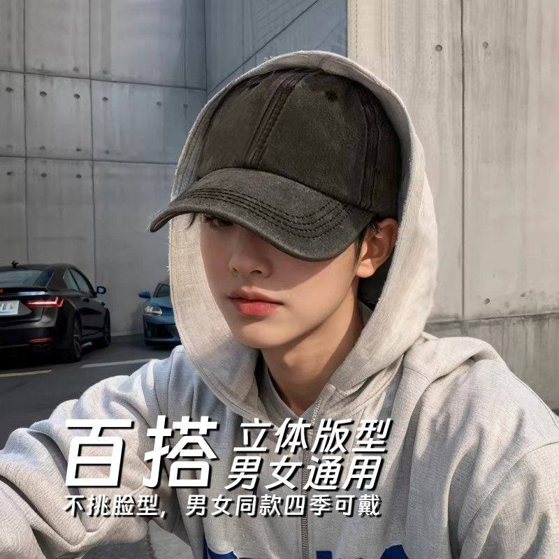 美式复古字母灰色棒球帽女高级感宽檐大头围显脸小百搭鸭舌帽子男