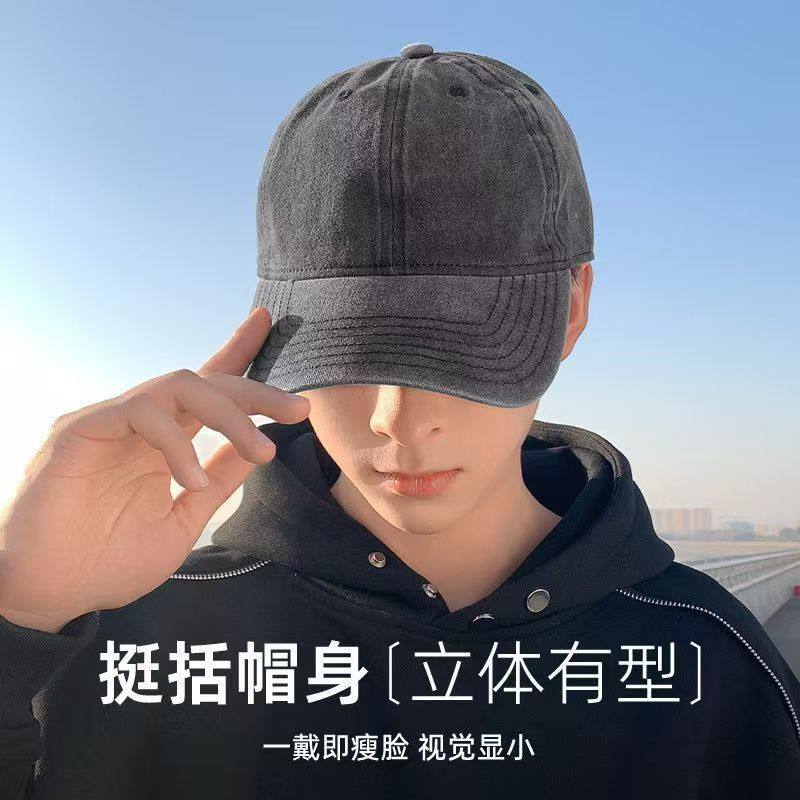 大头棒球帽子女硬顶加大帽檐显脸小纯色百搭新款黑色防晒鸭舌帽男