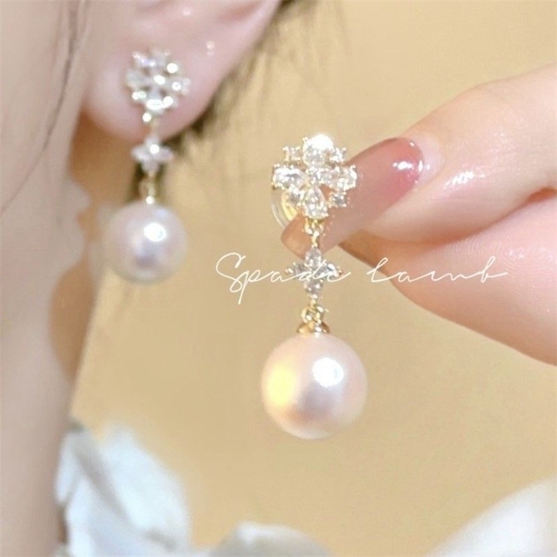 「奶霜」温柔小香风花朵珍珠流苏无耳洞蚊香盘耳夹法式耳环女雪花