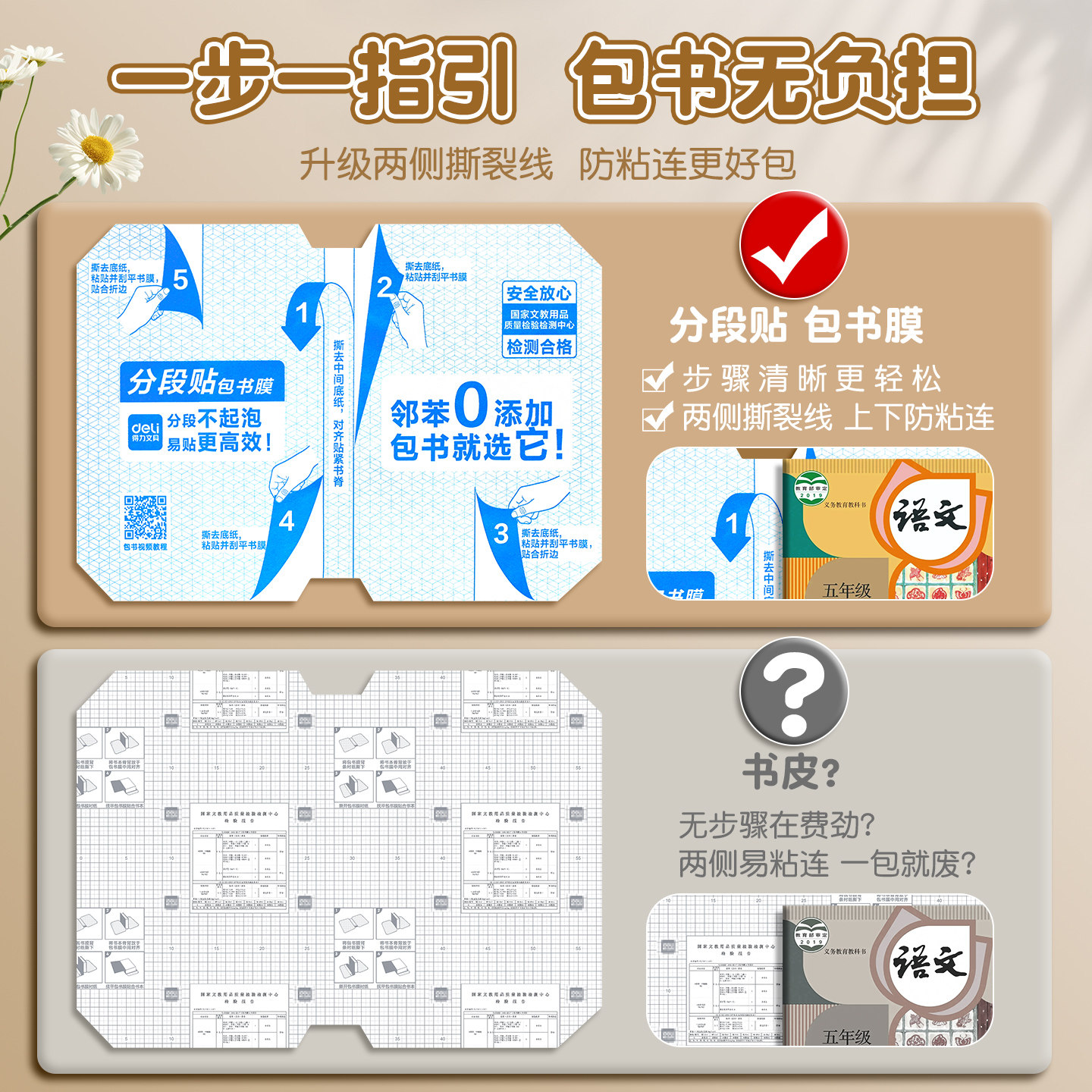 得力文具分段式包书皮常规书皮书套包书膜纸自粘透明磨砂加厚16K小学生一年级A4一体书壳塑料防水课本保护套