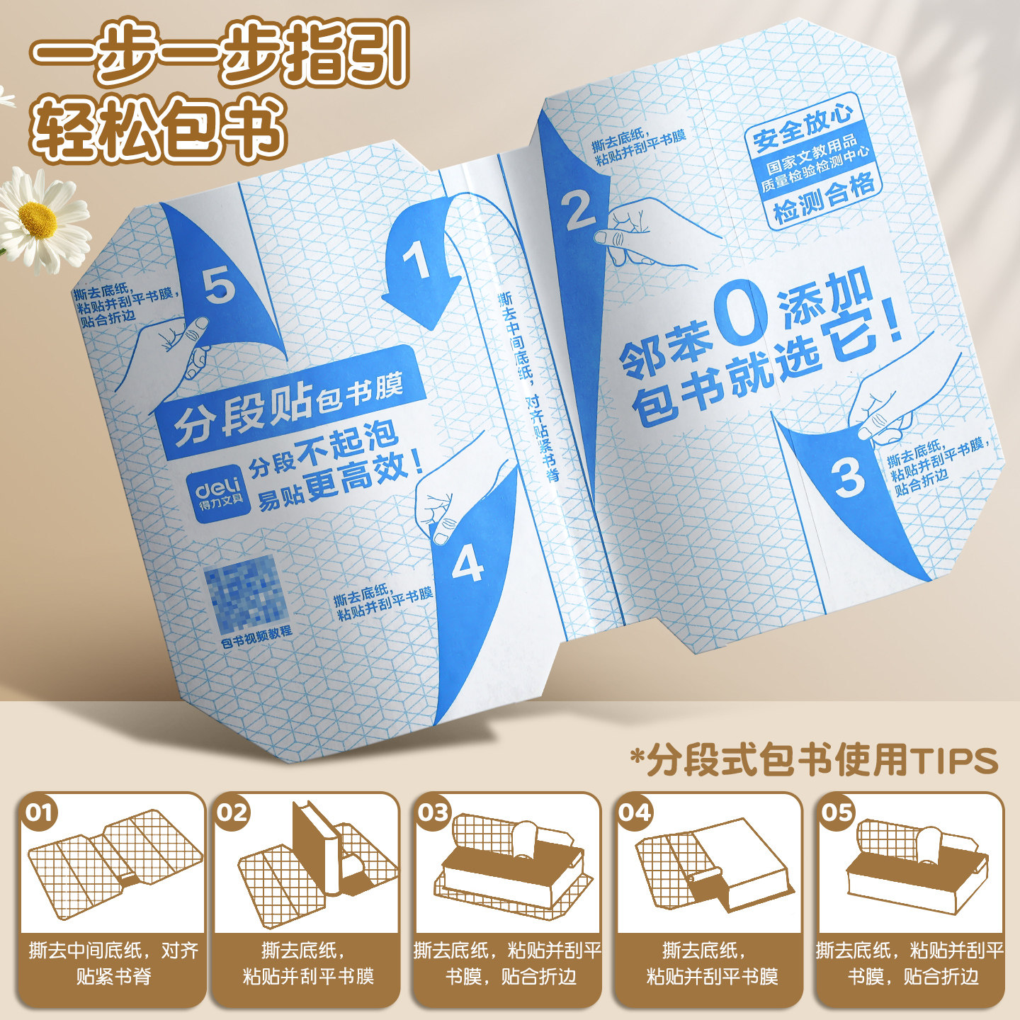【2件5折】得力纽赛分段式包书皮书套包书膜带定位书皮纸自粘透明磨砂加厚16K小学生一年级防水防滑塑料课本