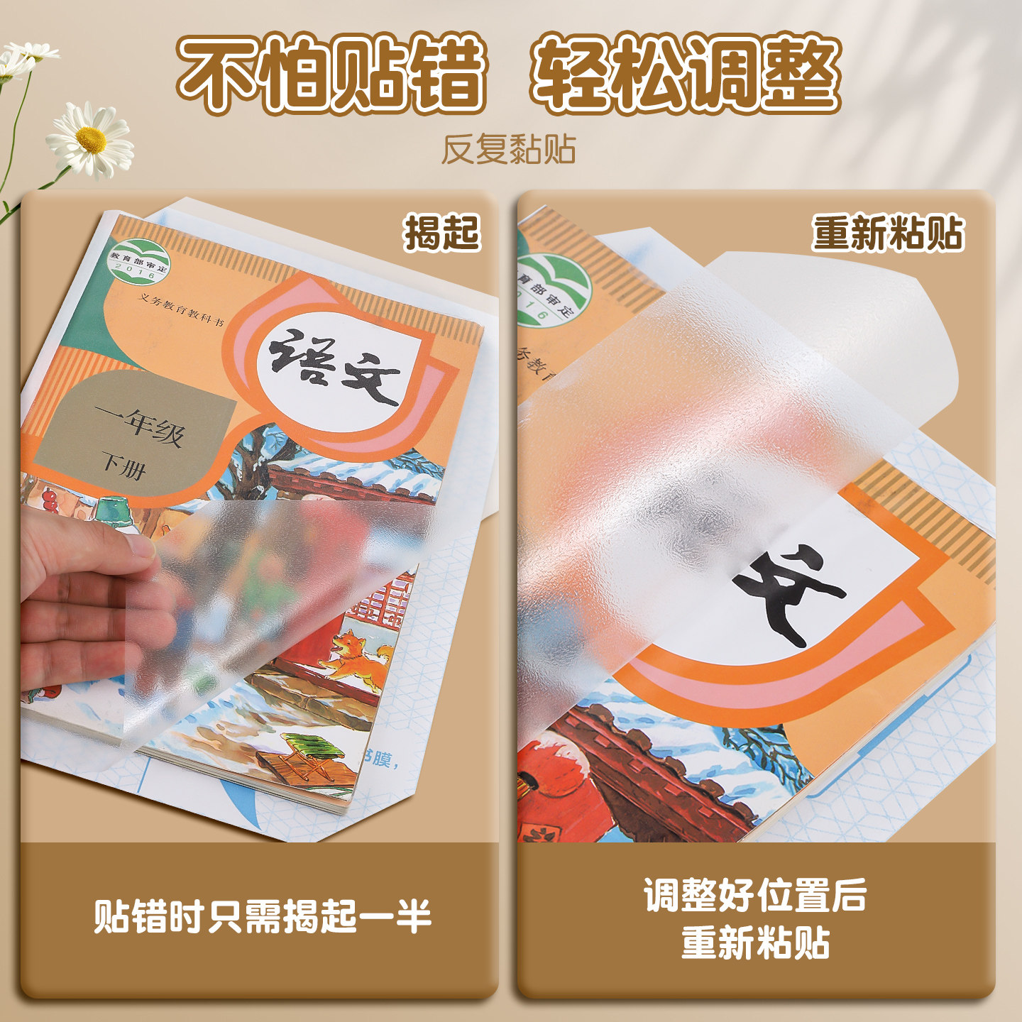 包书皮自粘透明磨砂书皮纸小学生专用一年级二三年上册中号16k课本2025新款书本封皮保护套书套书膜全套贴纸