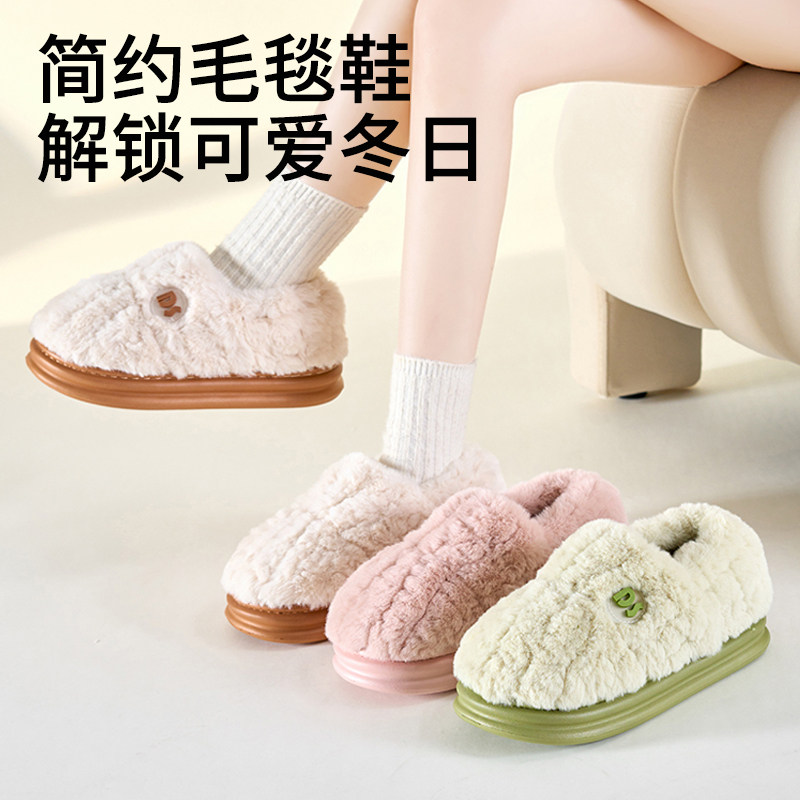 朴西棉拖鞋女士秋冬季厚底简约保暖室内居家用软底防滑情侣棉拖男
