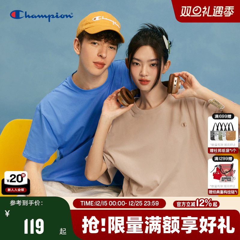 Champion冠军短袖t恤情侣2025夏季新款休闲宽松夏季刺绣上衣纯棉