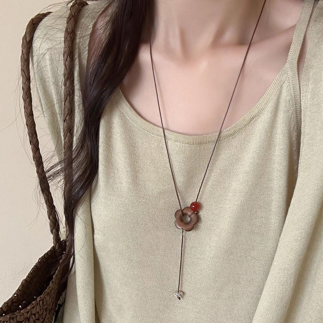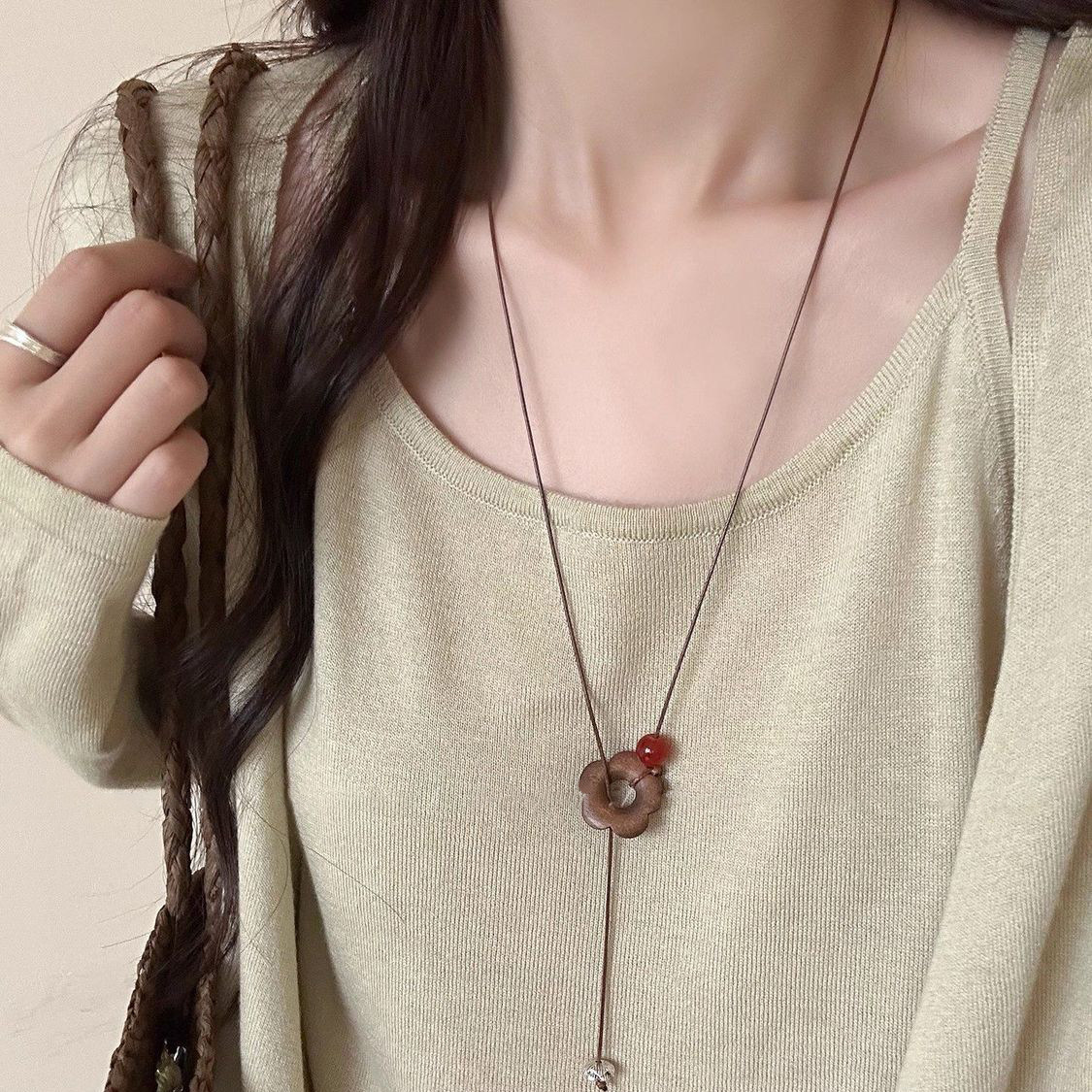 美拉德波西米亚叠戴毛衣项链女棕色复古穿搭choker锁骨链高级配饰