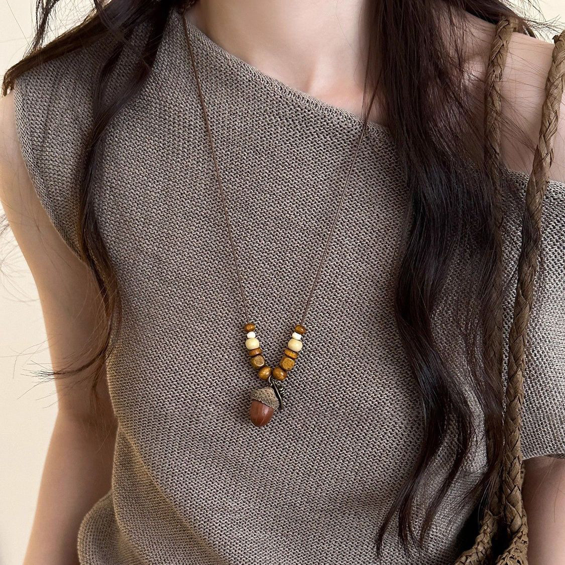 复古民族风橡果吊坠项链女2025新款爆款新中式古风长款毛衣链配饰