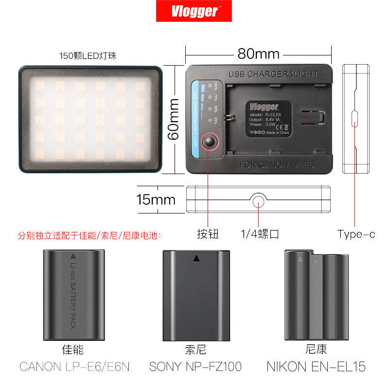 RGB口袋LED补光灯直播单反微单相机电池充电器Type-c可充电宝供电