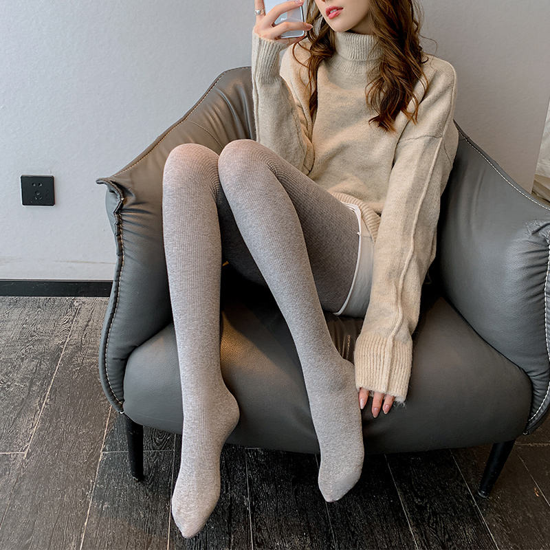 菇娘家热压连裤袜高支棉羊毛打底裤女灰色大码秋冬黑色保暖瘦腿袜