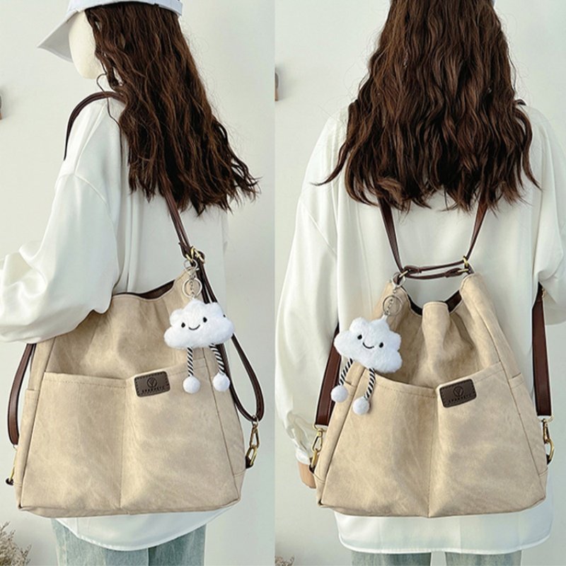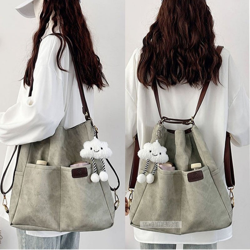 2025夏牛仔软皮三用背包包女大容量单肩托特包通勤斜挎包学生双肩