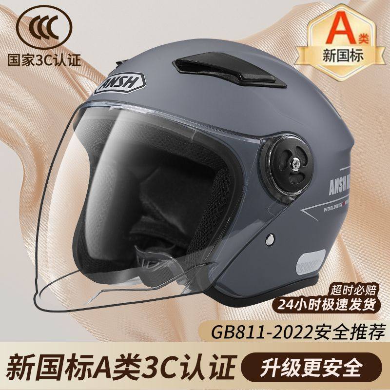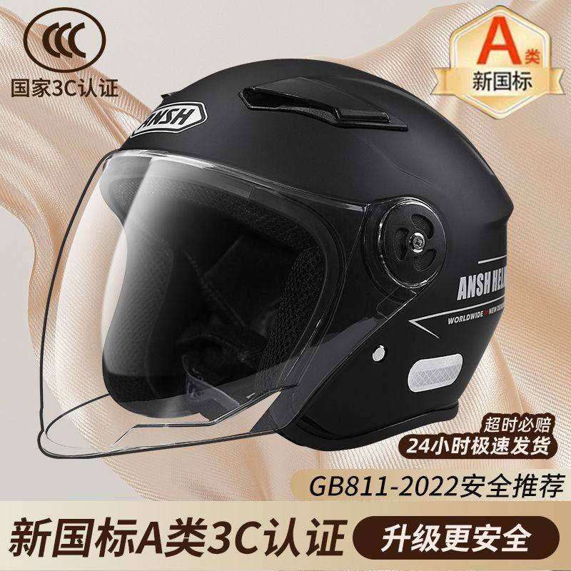 新国标3c认证电动车头盔电瓶摩托车安全帽夏季半盔四季通用镜片