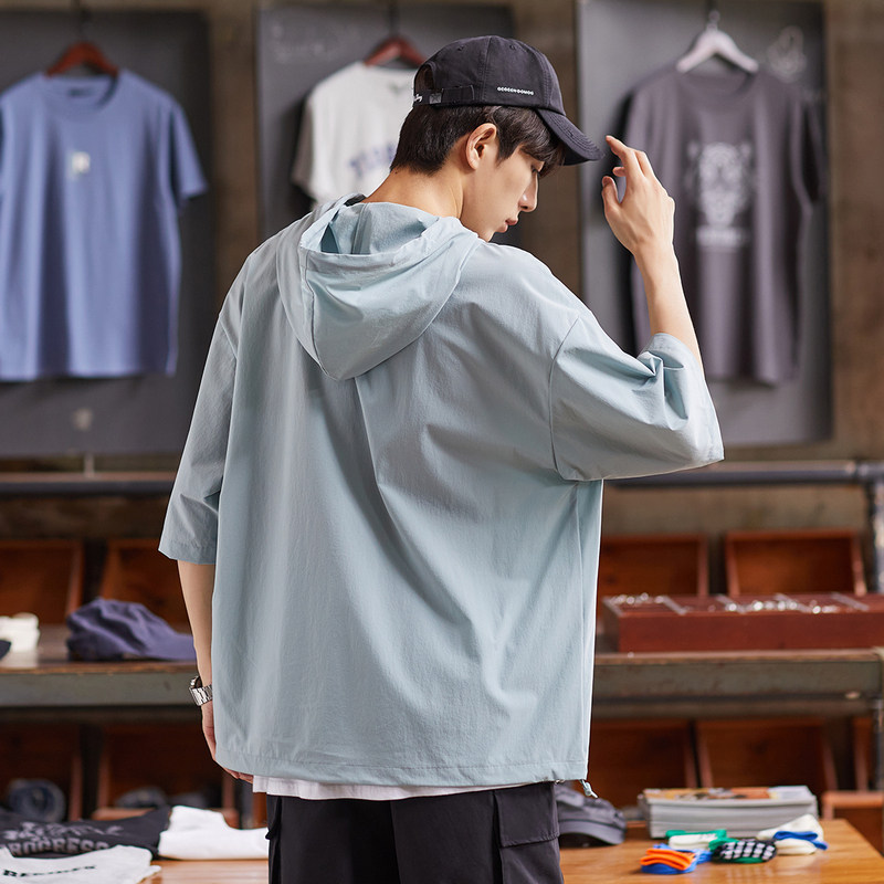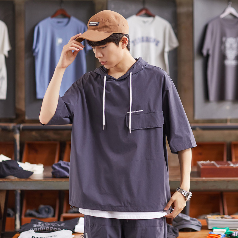唐狮半袖卫衣男士夏新薄款短袖t恤宽松设计感韩版潮上衣