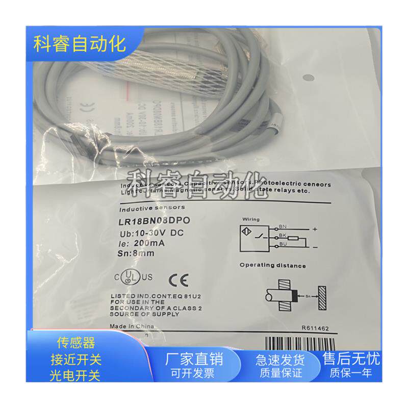 全新LR18BN08DPO-E2四芯接插件PNP常开传感器非齐平安装