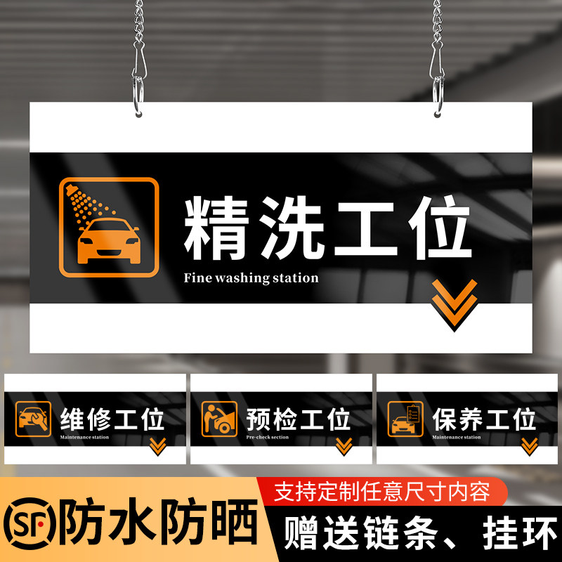 汽车养护分区吊牌标识牌定制汽修厂保养洗车精洗喷漆装潢改装抛光工位指示牌子4s店轮胎维修美容配件区域挂牌