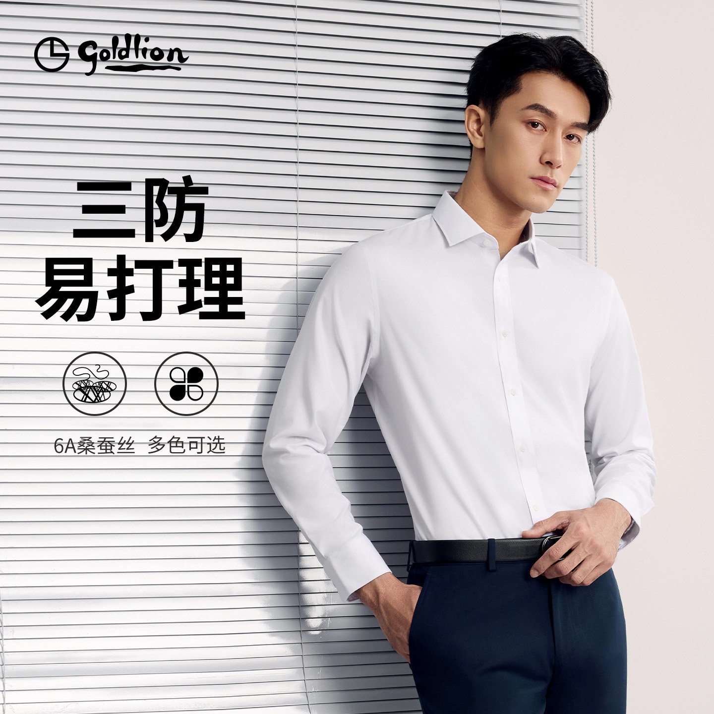 【桑蚕丝三防】金利来春夏新款白衬衫商务衬衣抗皱条纹长袖男上衣