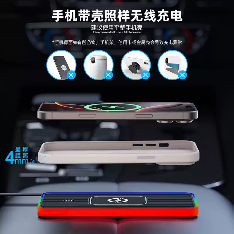 氛围灯20W车载无线充电器板汽车通用手机无线充电垫改装模块底座